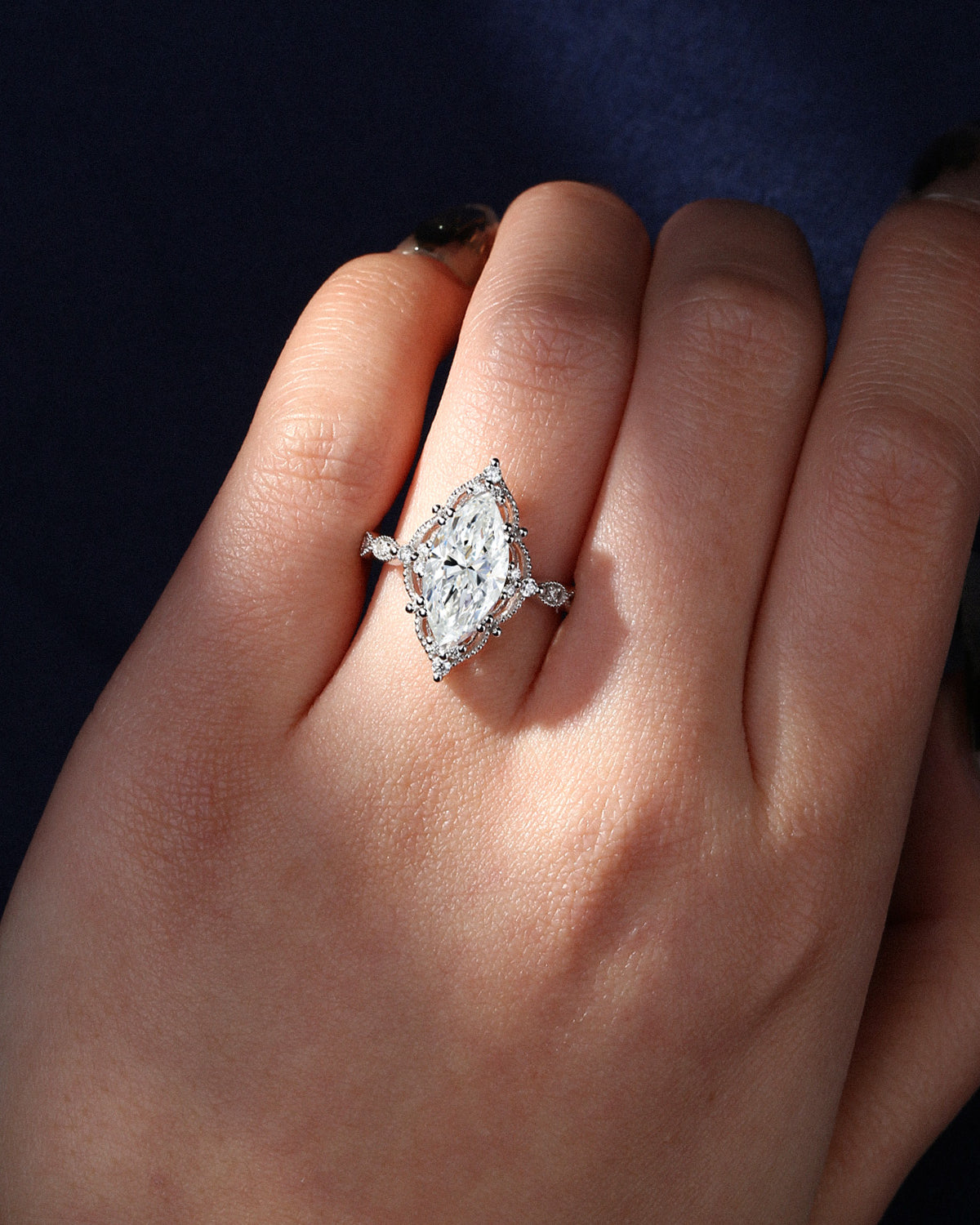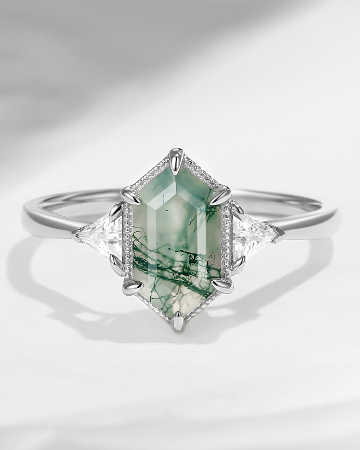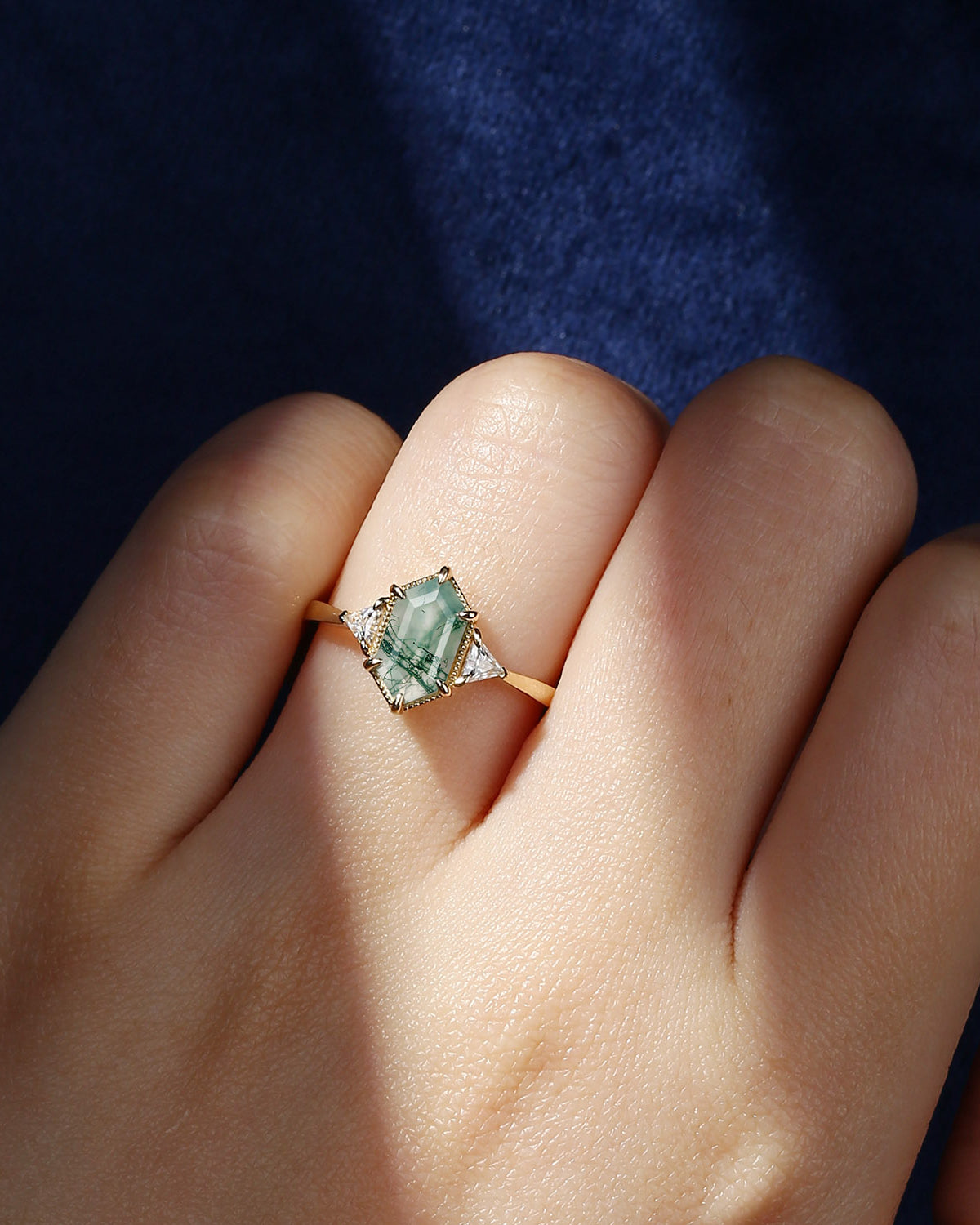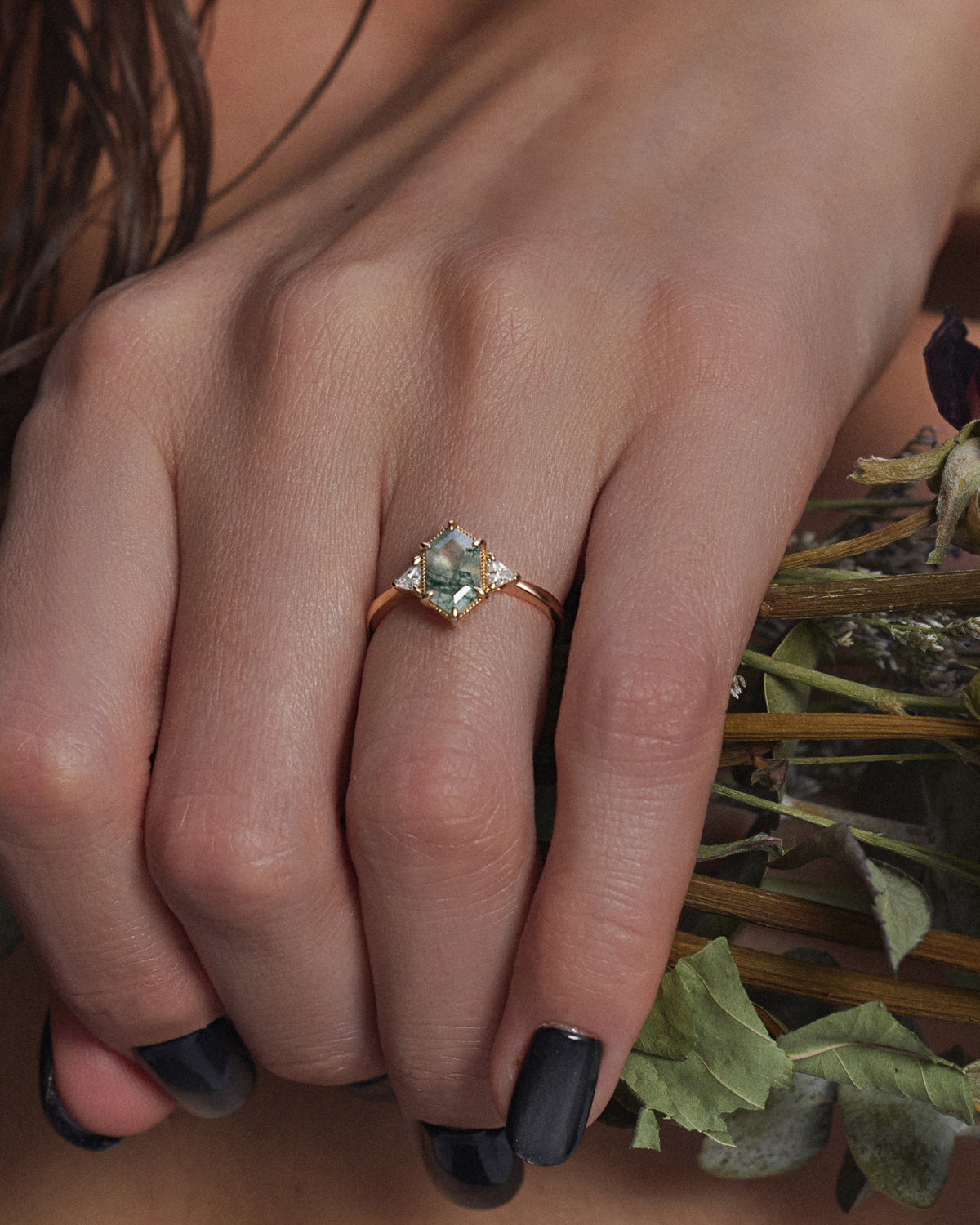 2.5ct 18K Marquise Vintage Inspired Moss Agate Engagement Ring