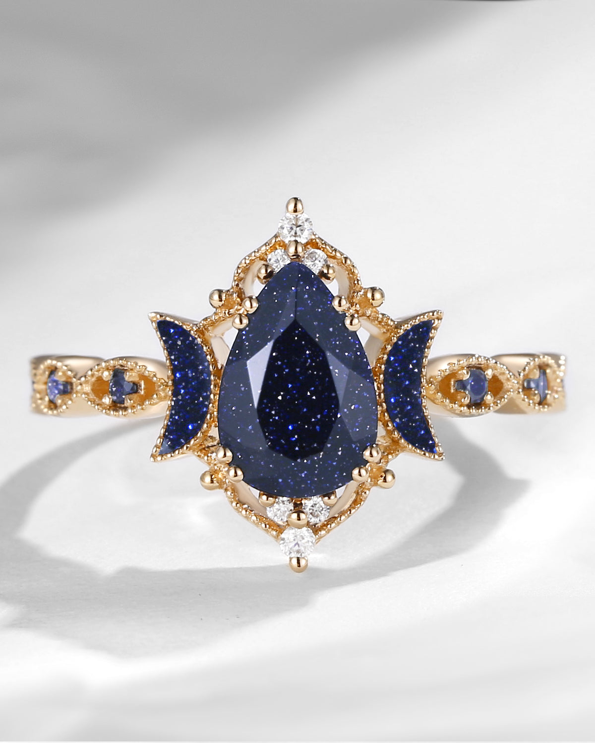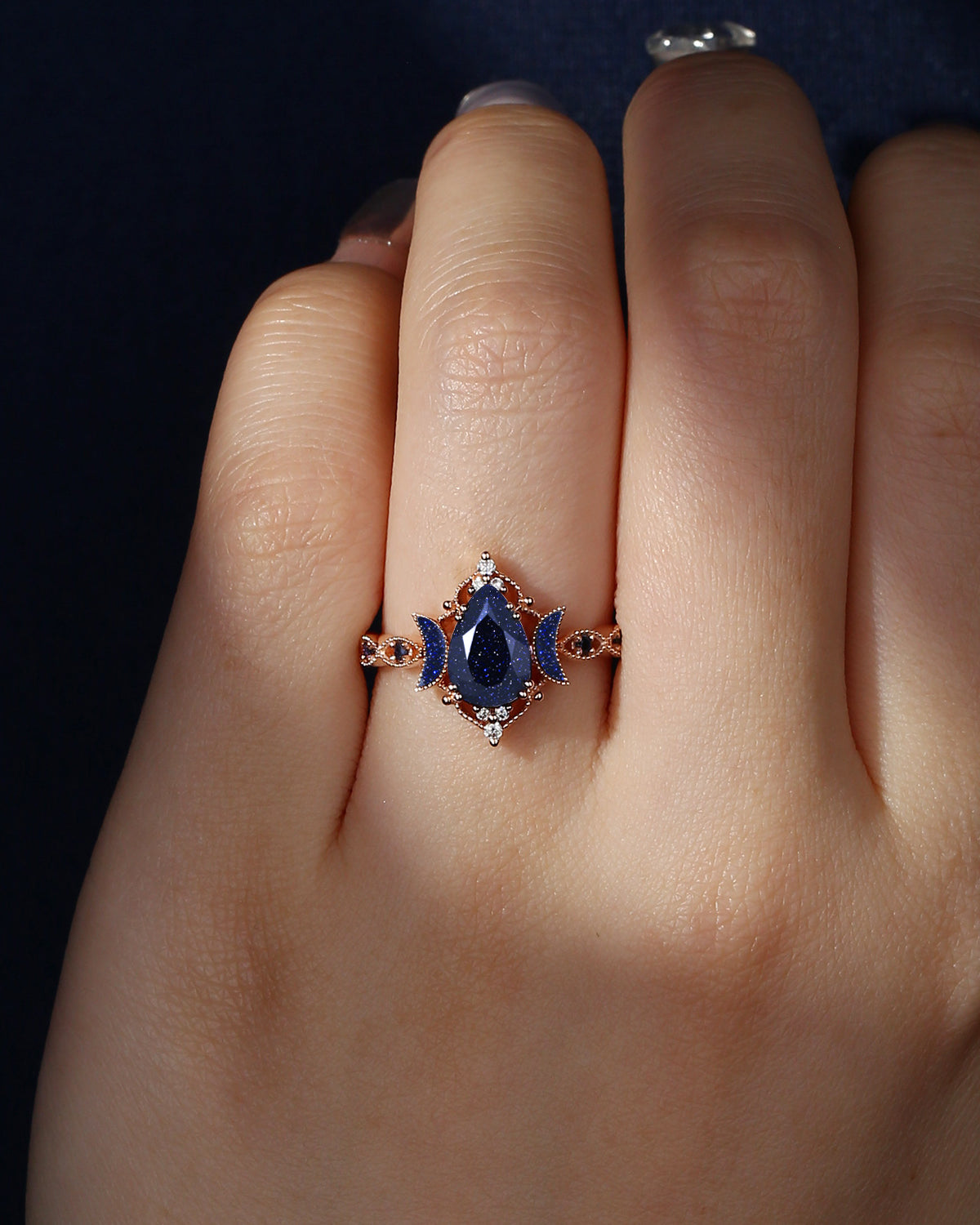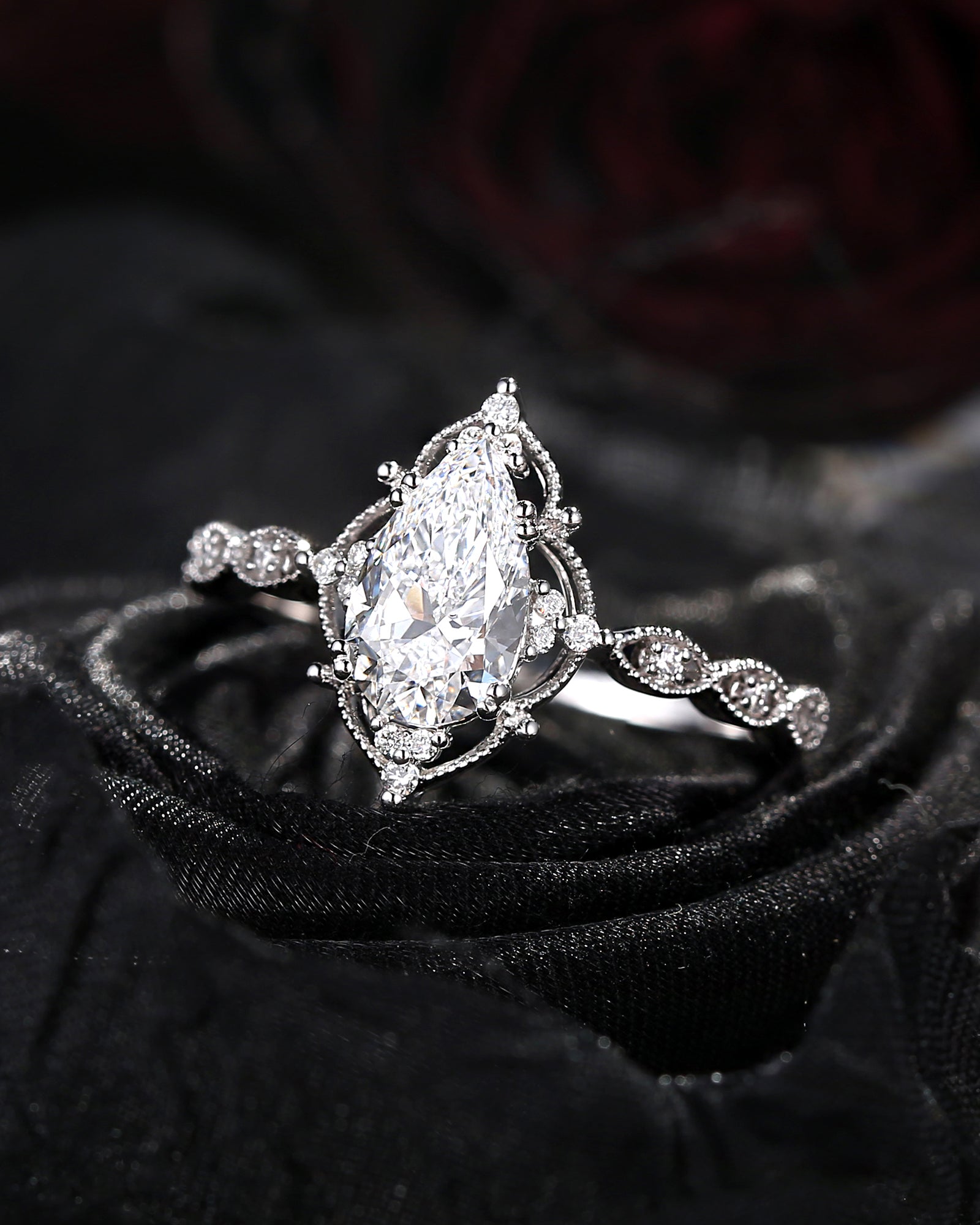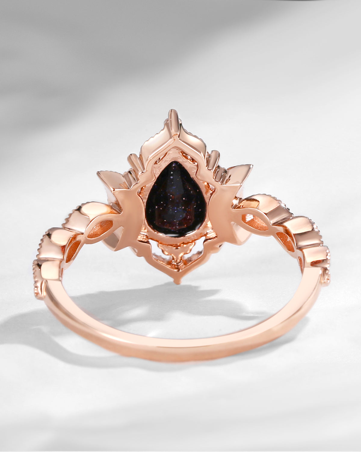 Crescent Moon | Unique Garnet Black Gold Engagement Ring In Pear Shape - Eclipse