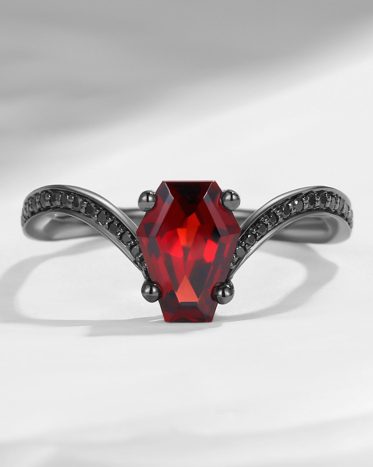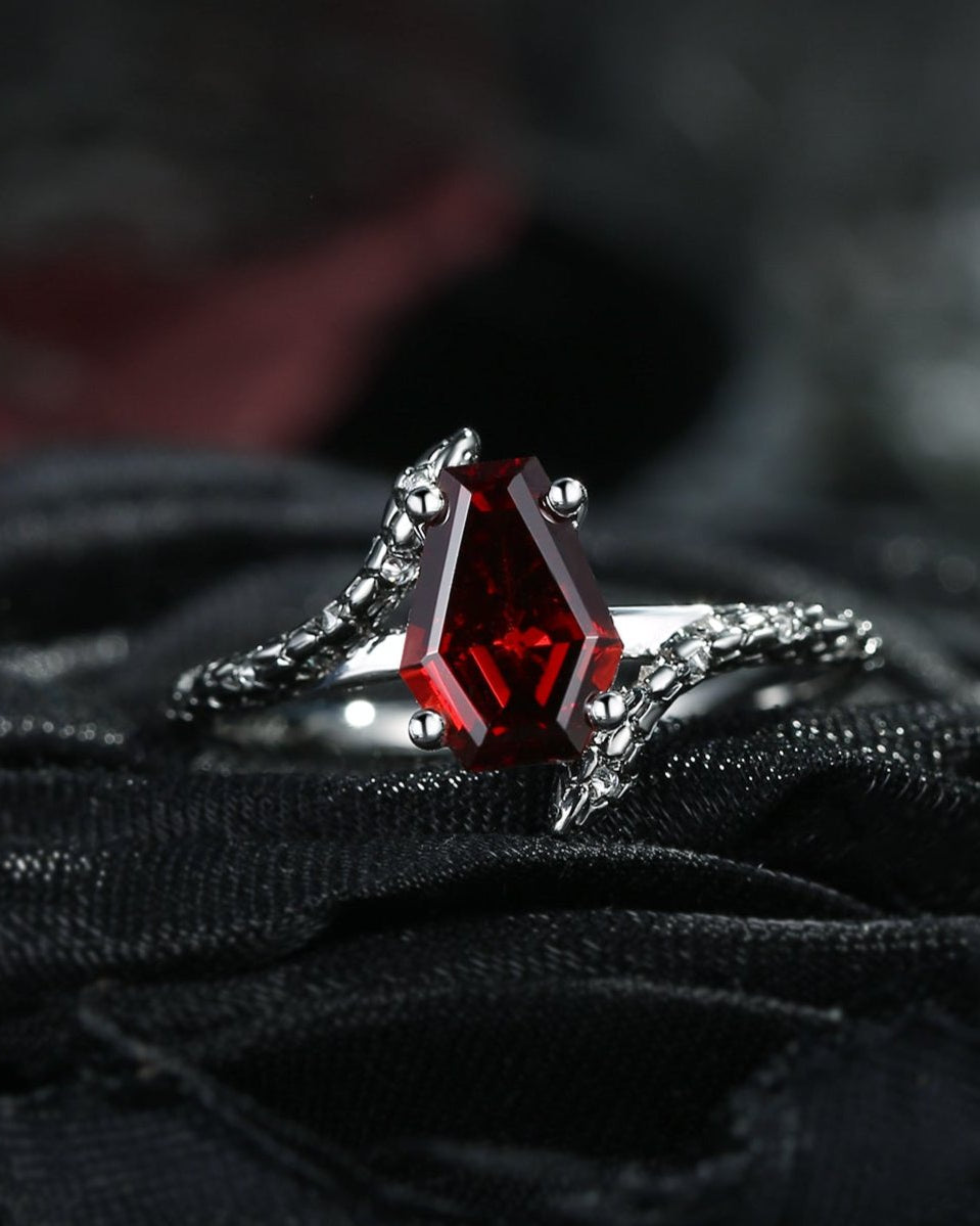 'Serpent's Embrace'- Vintage Twist Coffin Cut Garnet Engagement Ring
