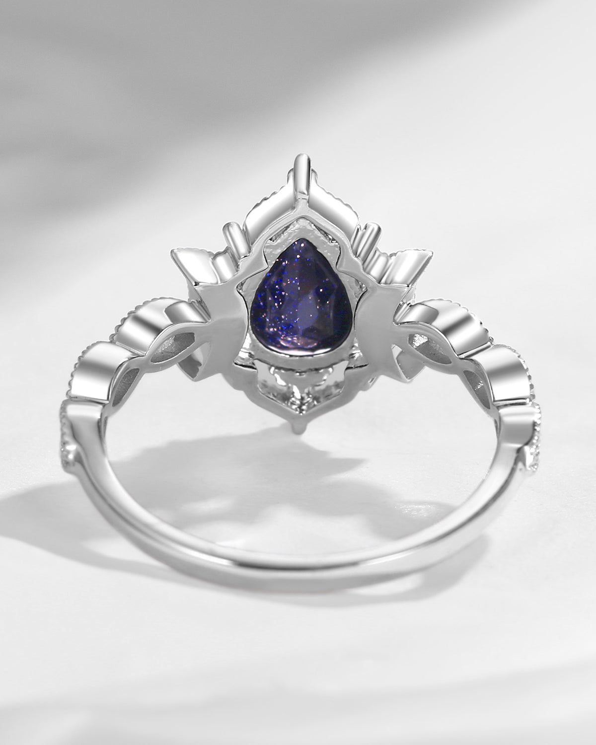 Coffin Cut Vintage Blue Sandstone Black Gold EngagementRing - Bat Ring