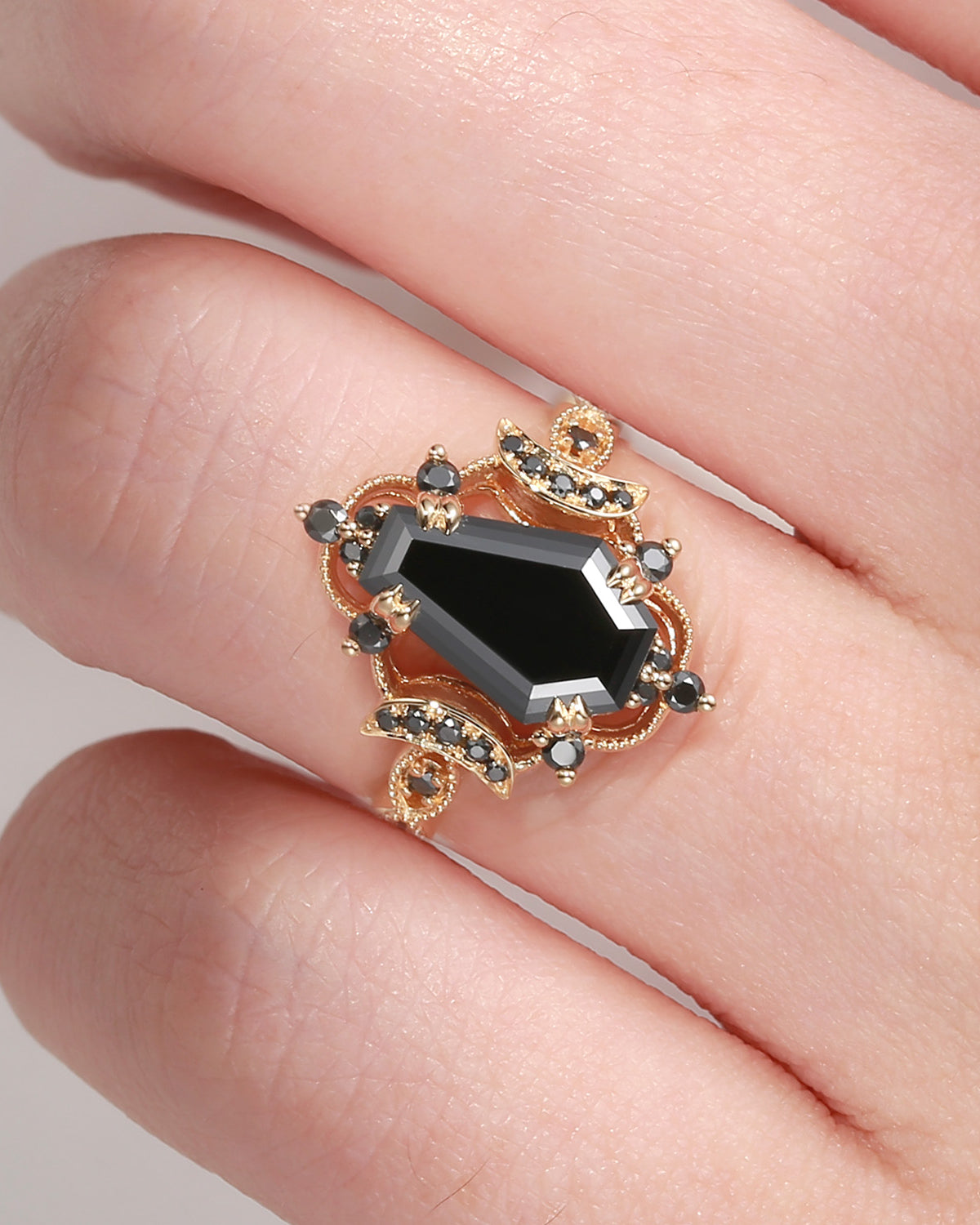 Crescent Moon | Coffin Cut Black Rutilated Quartz Ring 18k - Till Death Do Us Apart