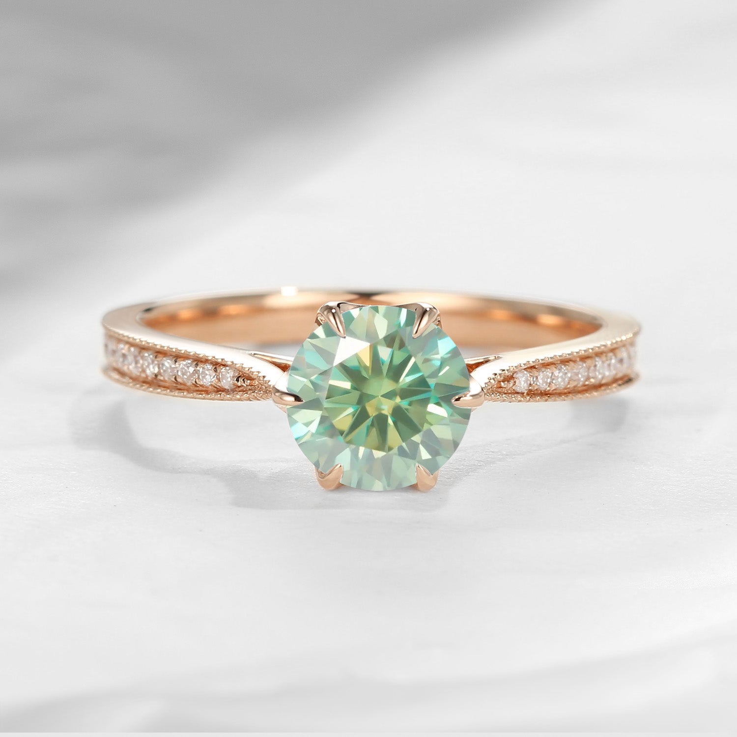 Antique Mint Moissanite Engagement Ring Solitaire Wedding Ring Milgrain Tapered Ring
