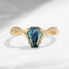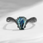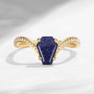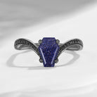 Coffin Cut Vintage Blue Sandstone Gold Engagement Ring - Bat Ring