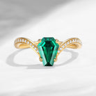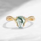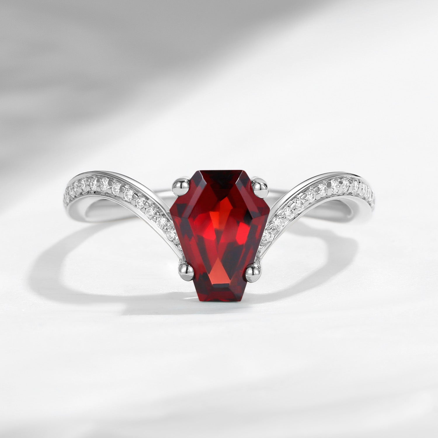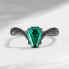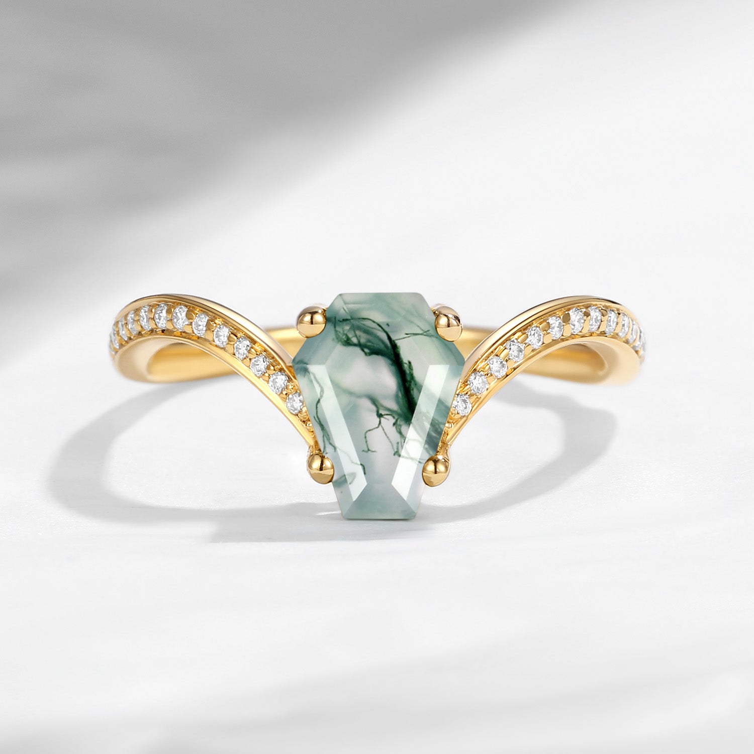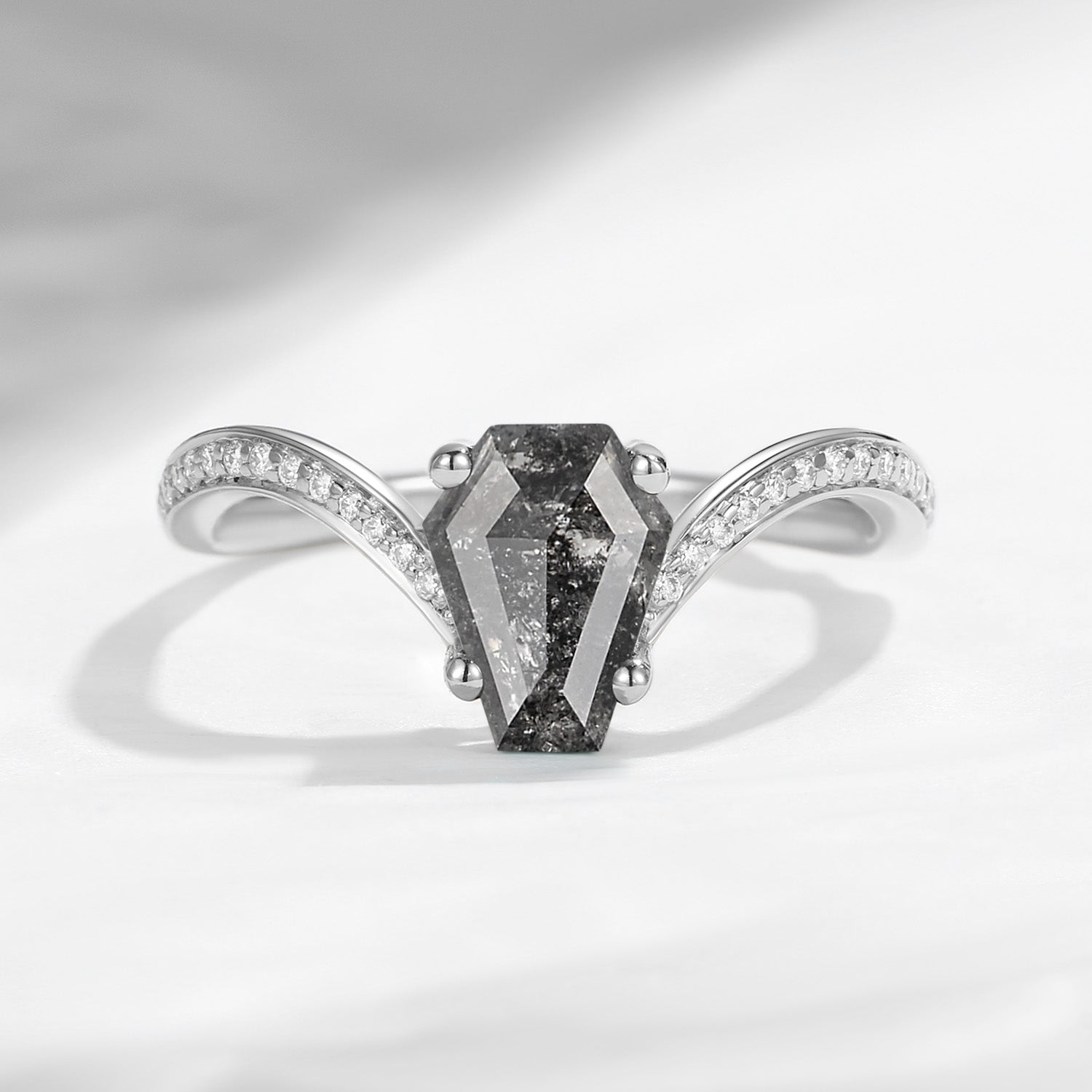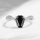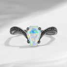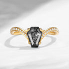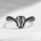 Coffin Cut Vintage Yellow Rose White Gold Goth Dark Bat Engagement Ring