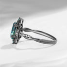 Crescent Moon | Coffin Cut Teal Moissanite Infinity Black Gold Engagement Ring - Infinity Galaxy