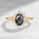 Black Rutilated Quartz Engagement Ring Cluster Wedding Ring Oval Halo Flower Vine Ring Star Snowflake Mini Ring Plain Stacking Band Gift Unique