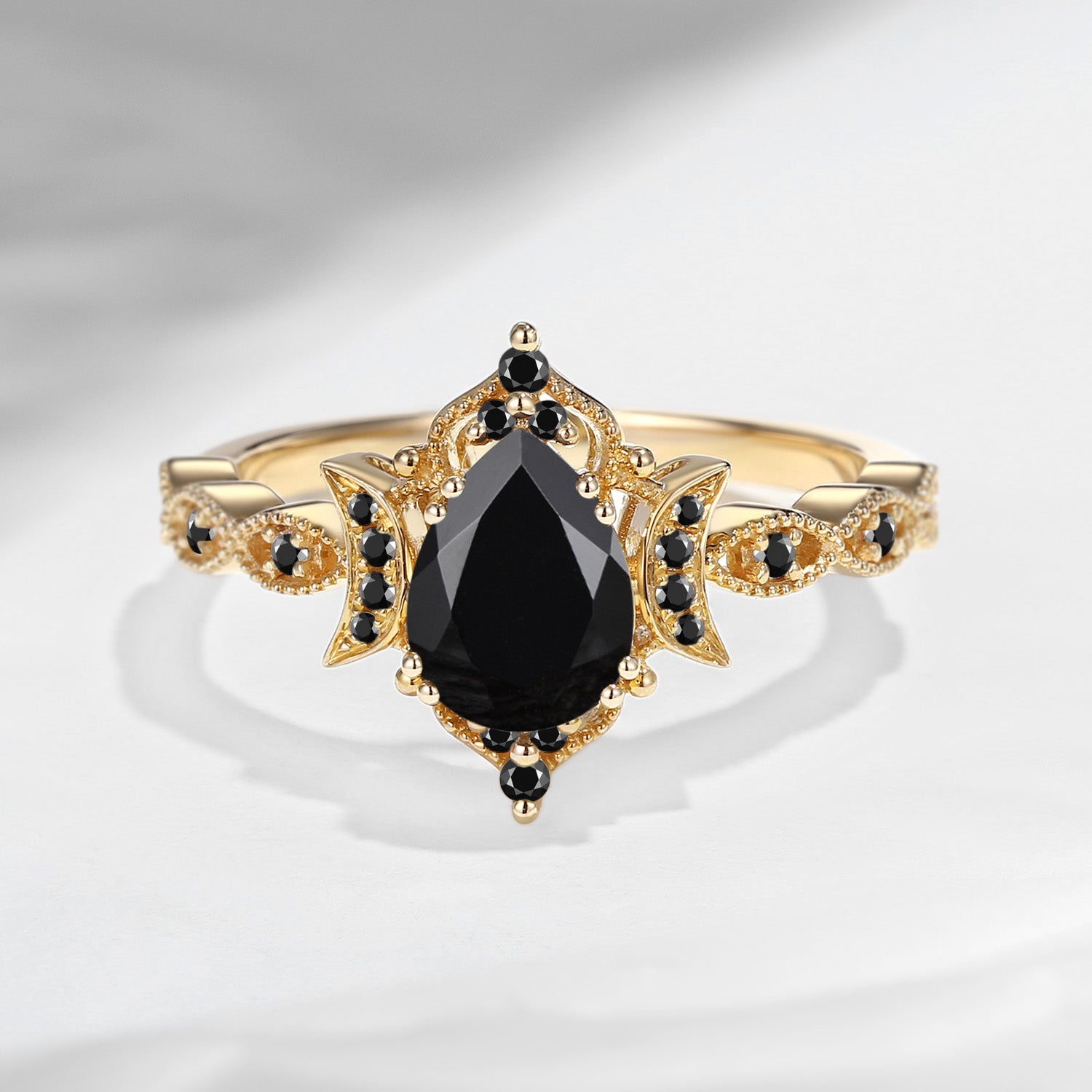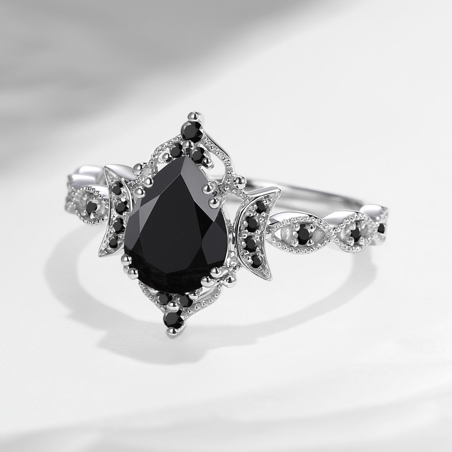 Crescent Moon | Unique Black Moissanite Engagement Ring In Pear Shape - Eclipse