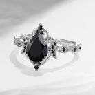 1.5ct Pear Cut Unique Black Moissanite Engagement Ring Gemstone Engagement Ring- Eclipse