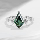 ⟢ Center Stone: Natural Teal Sapphire, kite cut faceted