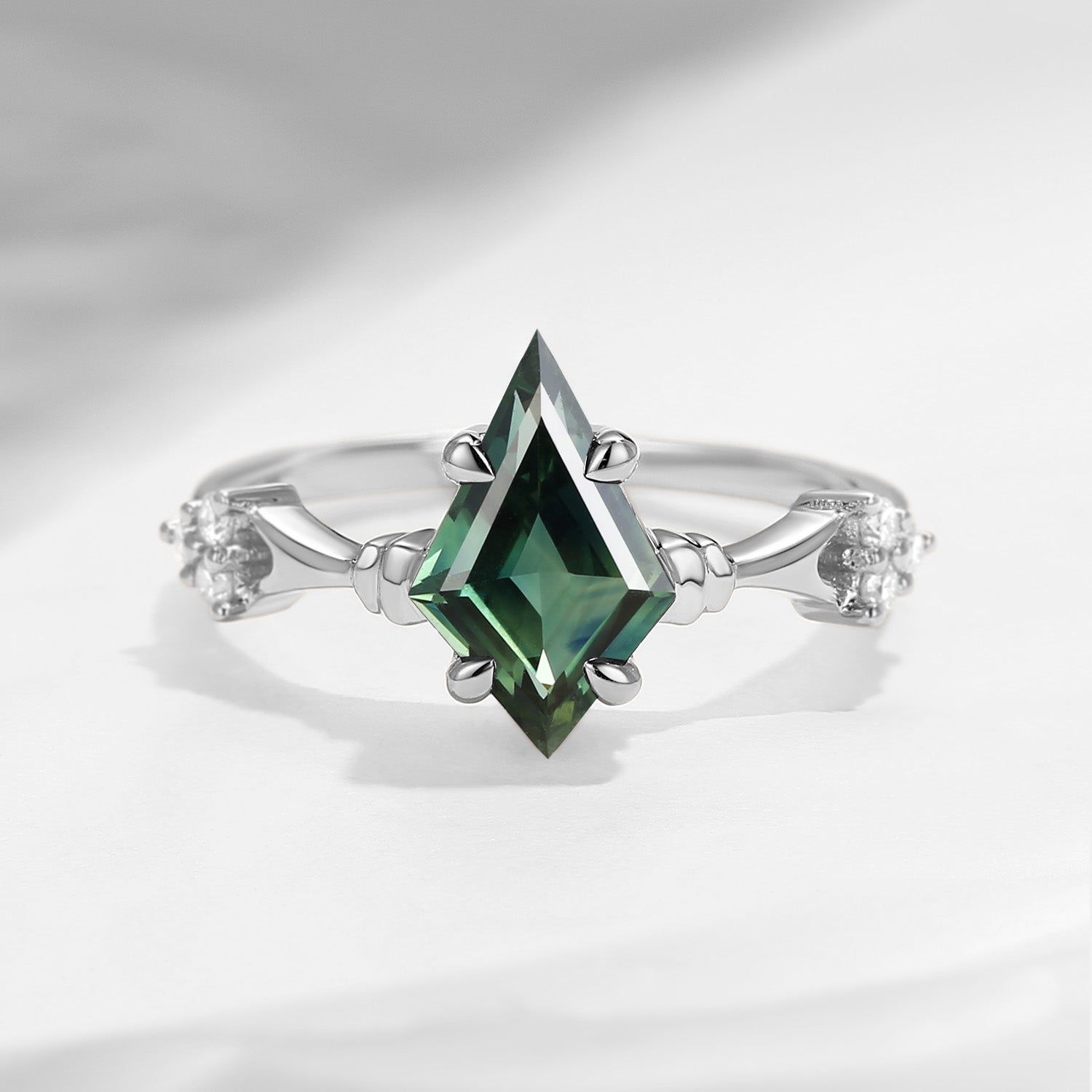 ⟢ Center Stone: Kite Cut Natural Teal Sapphire, 6*9mm