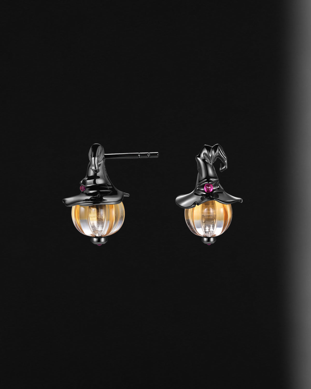 Crescent Moon | Pear Cut Lab Yellow Diamond Galaxy Engagement Ring Set 2pcs