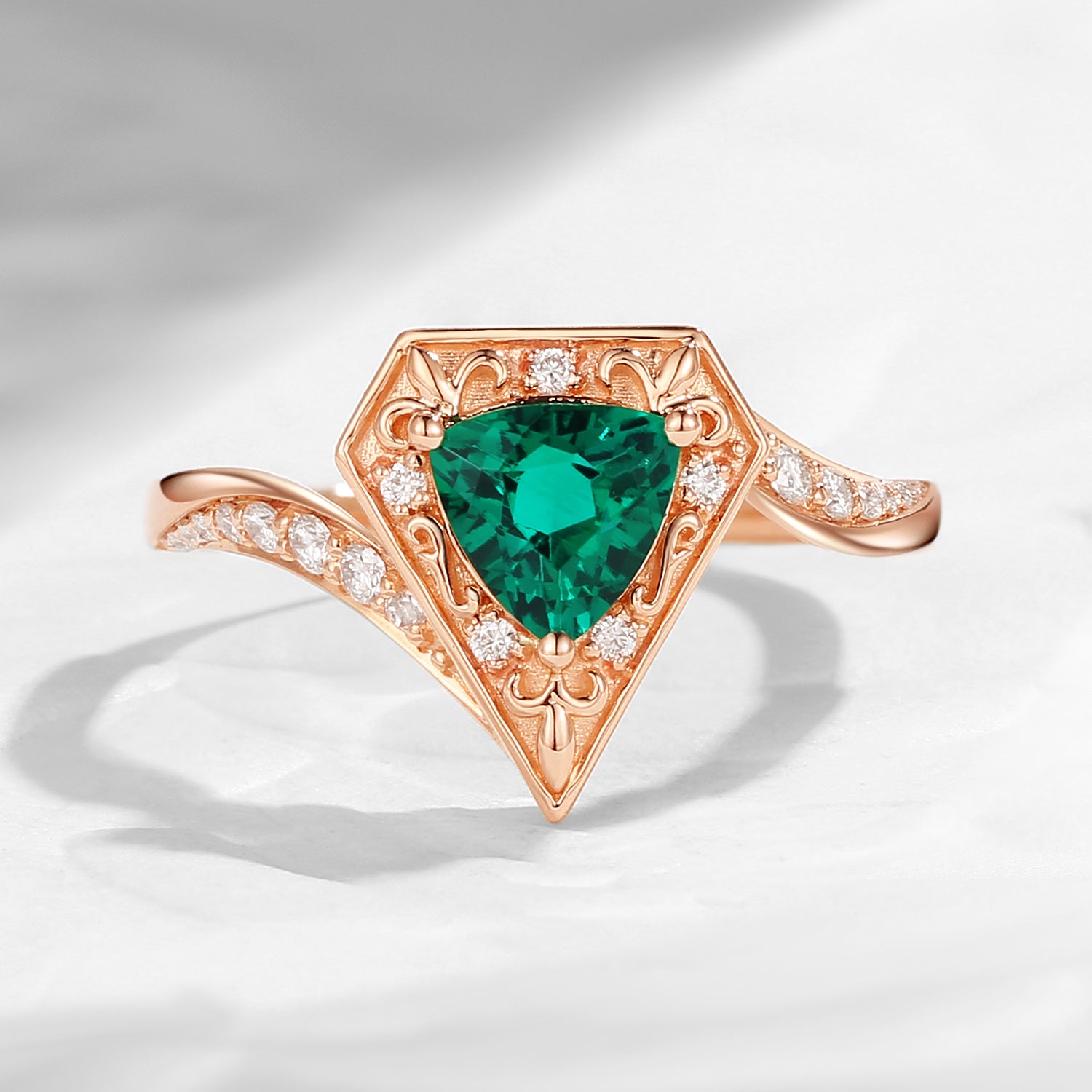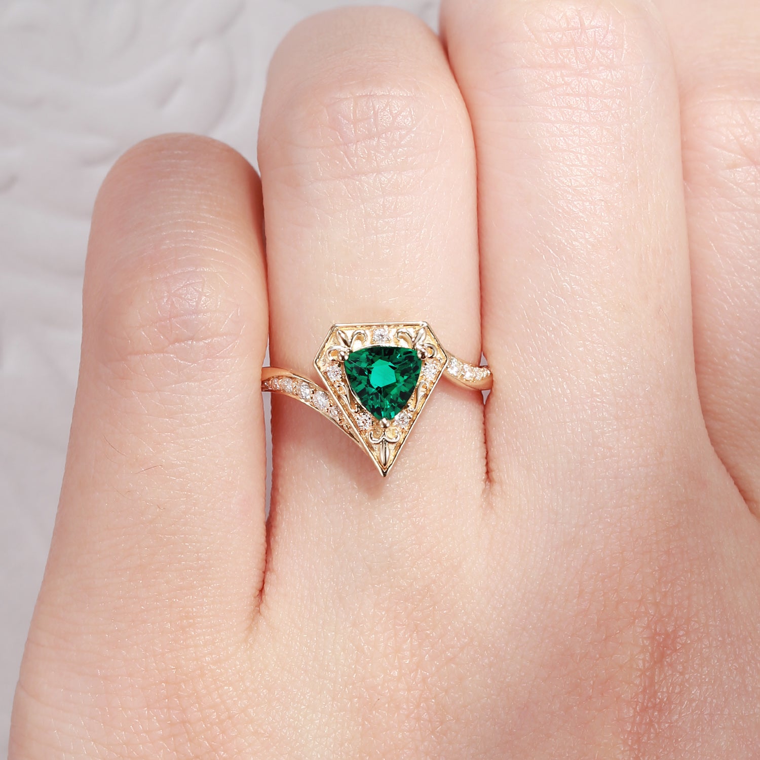 Shield Cut 'Fallen Aegis' Leafy Filigree Gold Engagement Ring