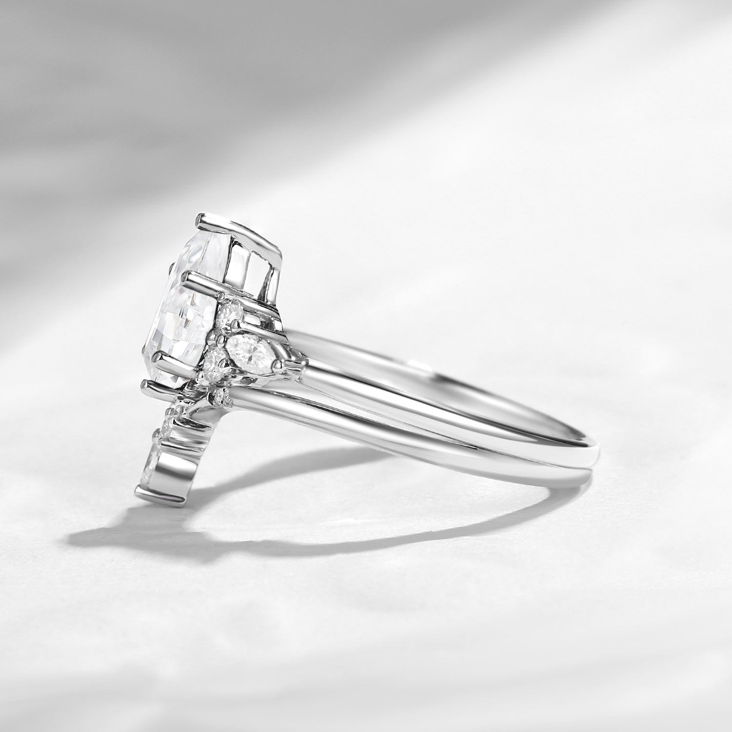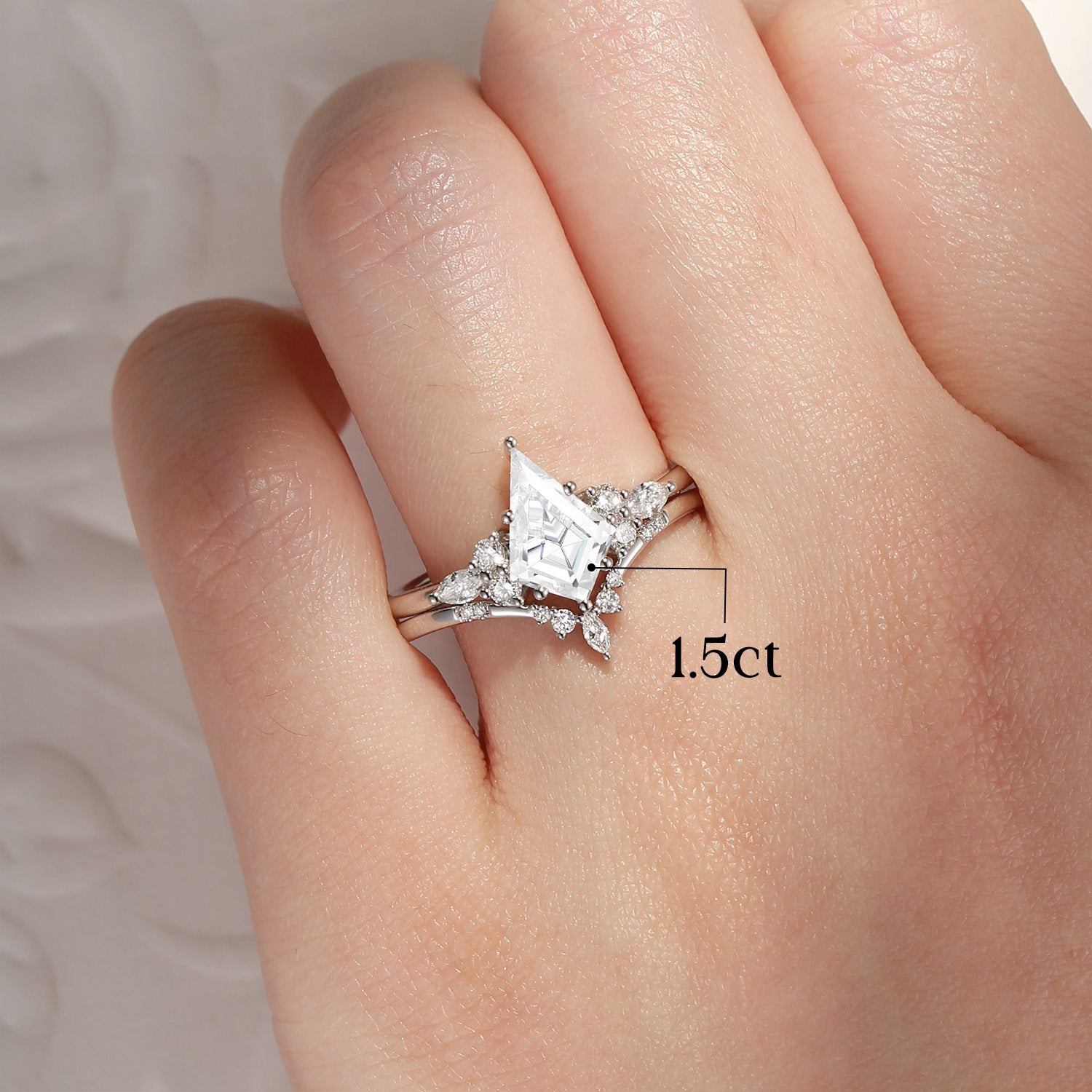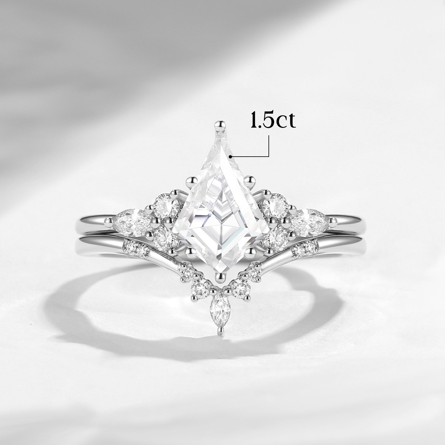 1.0-2.0ct Kite Cut Lab Diamond Cluster Engagement Ring Set 2pcs