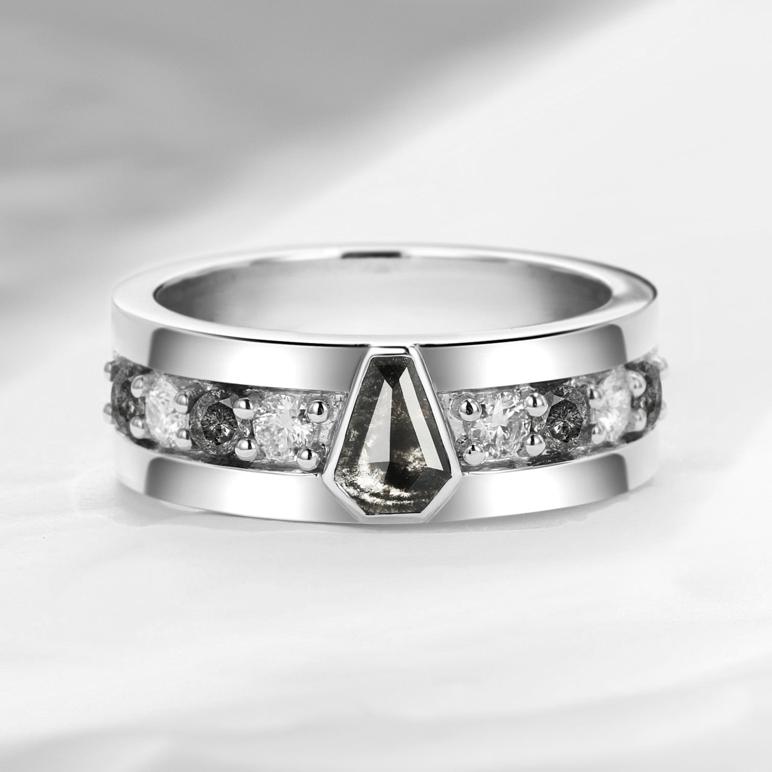 Unique Coffin Cut Salt & Pepper Diamond Wedding Band For Men