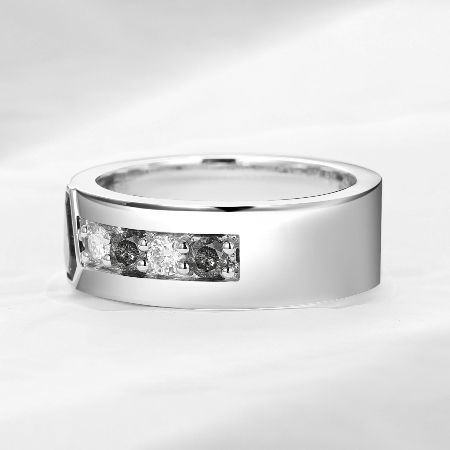 Unique Coffin Cut Salt & Pepper Diamond Wedding Band For Men - King's Scepter