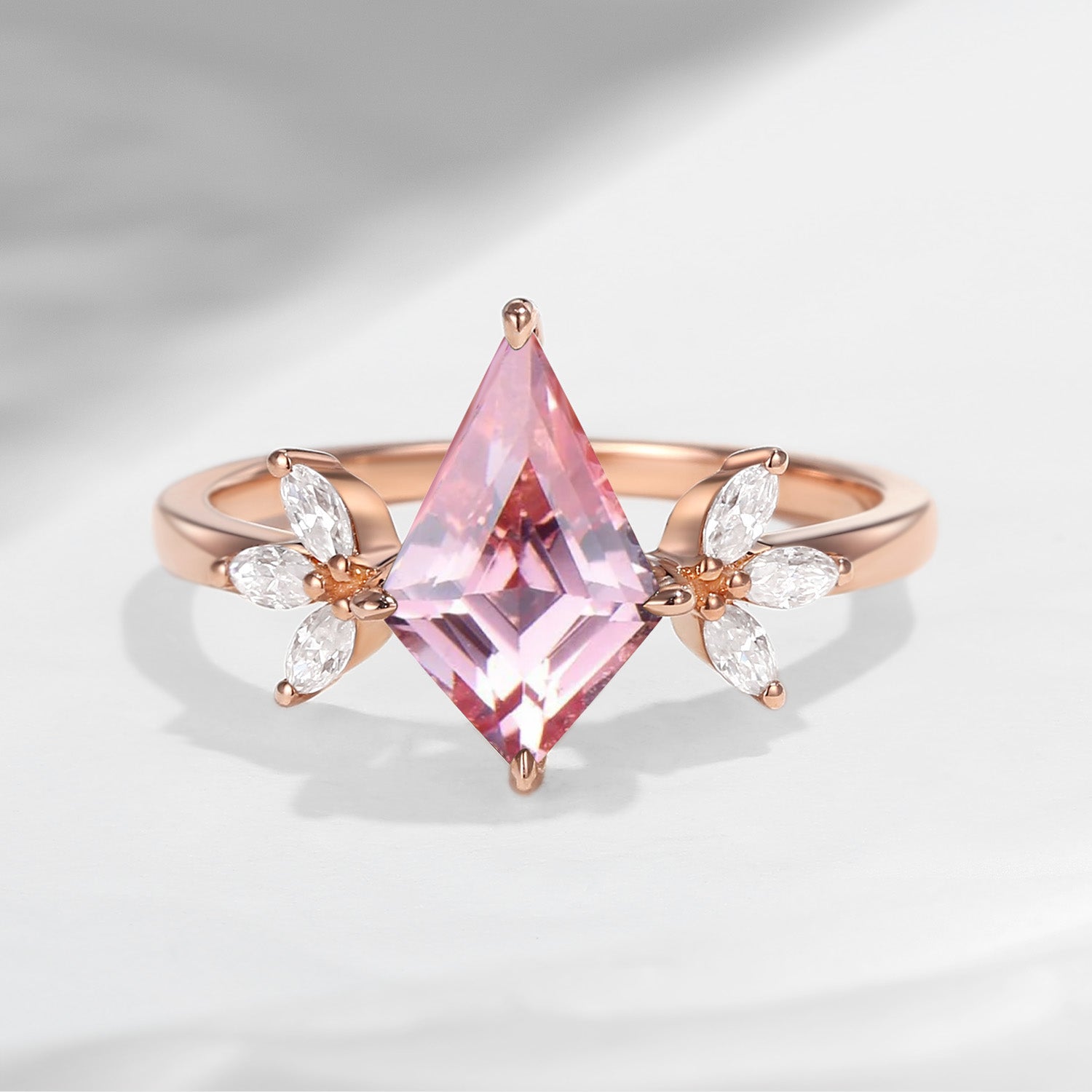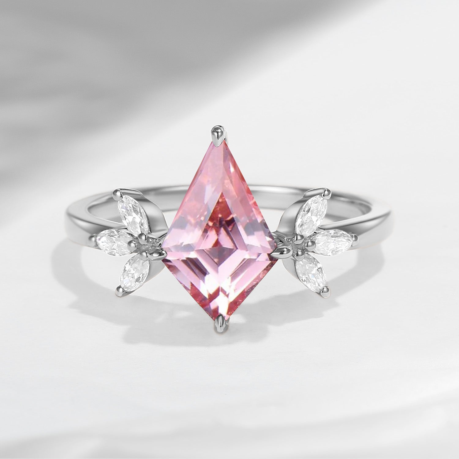 Kite Shaped Pink Lab Diamond Engagement Ring Kite Engagement Ring Unique Art Deco Flower Gift