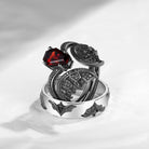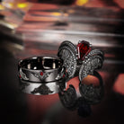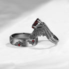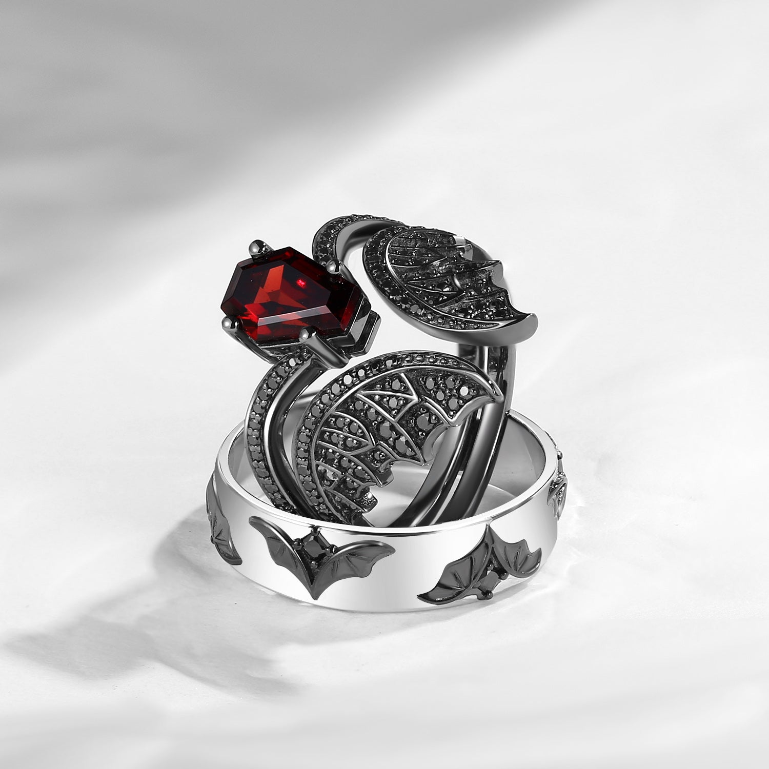 Bat Wing Inspired Coffin Garnet & Black Moissanite Couple Bridal Ring Set