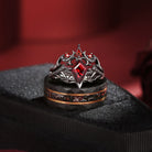 Bat Wing Inspired Kite Cut Garnet & Strips Leafy Band Couple Bridal Ring Set