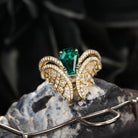 Coffin Cut Lab Emerald Vintage Yellow Gold Bridal Set 2pcs - Bat Ring