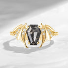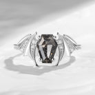 Coffin Cut Salt And Pepper Diamond Bat Wing Inspired Black Gold Engagement Ring - Bat Ring