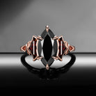 Marquise Cut Black Moissanite Gothic Bat Inspired Engagement Ring - Bat Ring