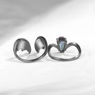 Unique Coffin Cut Lab Alexandrite Turquoise Black Gold Bridal Set 2pcs - Bat Ring