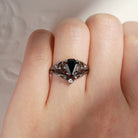 Unique Coffin Shaped Black Moissanite Bat Wing Inspired Engagement Ring Set 2pcs
