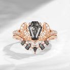 Unique Coffin Shaped Black Rutilated Quartz Bat Wing Inspired Engagement Ring Set 2pcs