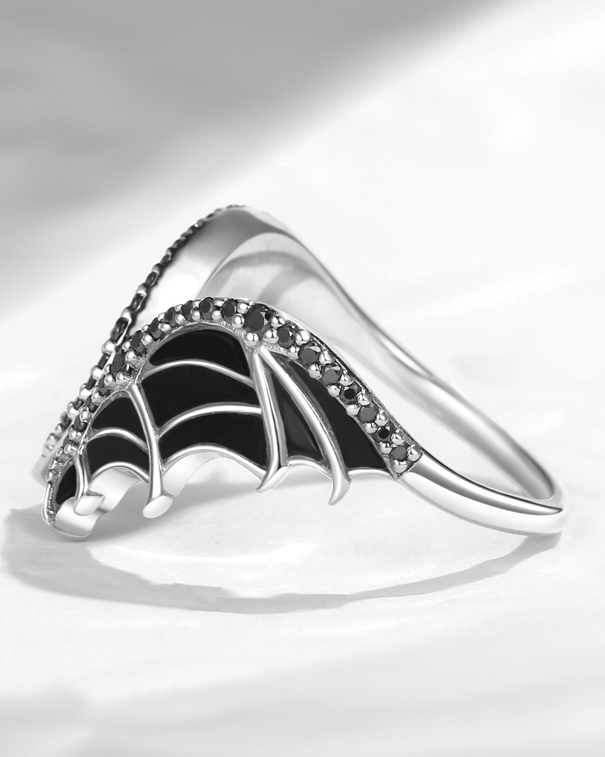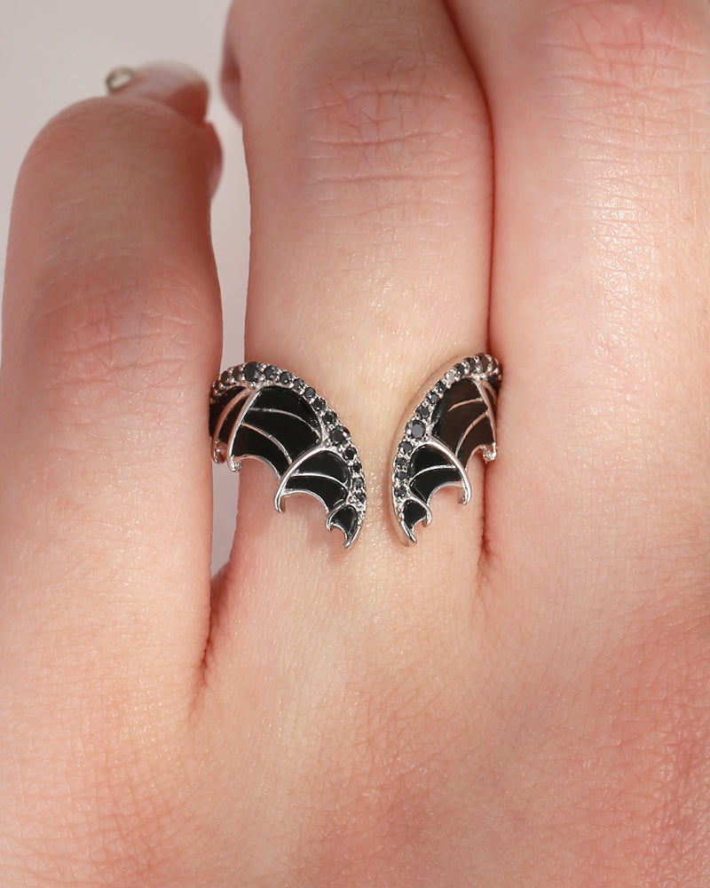 Curved Bat Wing Inspired Onyx Black Gold Wedding Enhancer Ring