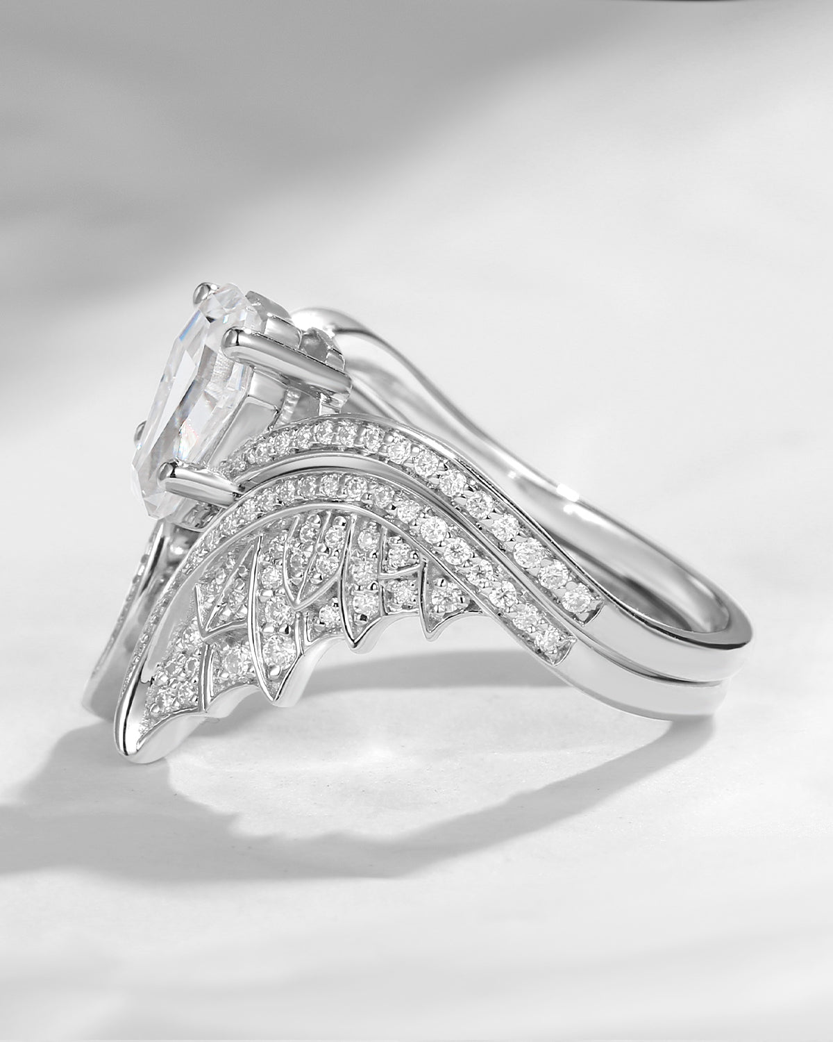 Marquise Cut Moissanite Vintage White Gold Bridal Set 2pcs - Bat Ring