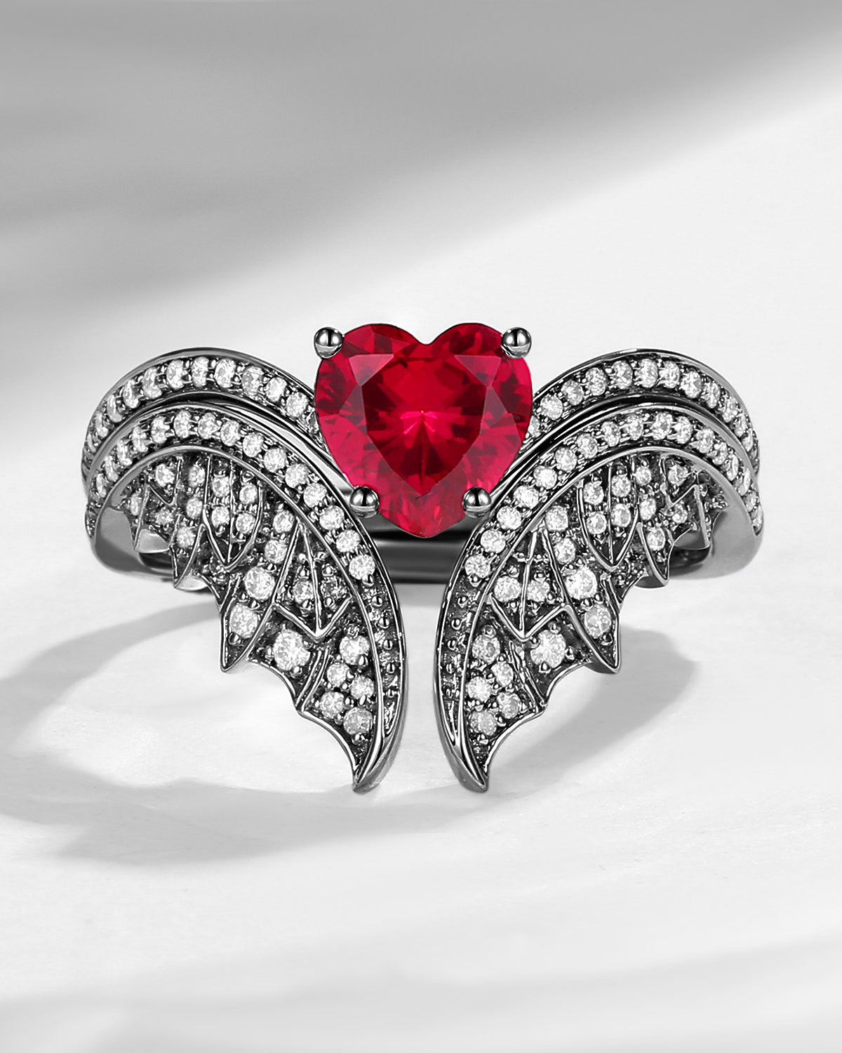 Heart Shaped Lab Ruby Vintage Bridal Set 2pcs - Bat Ring