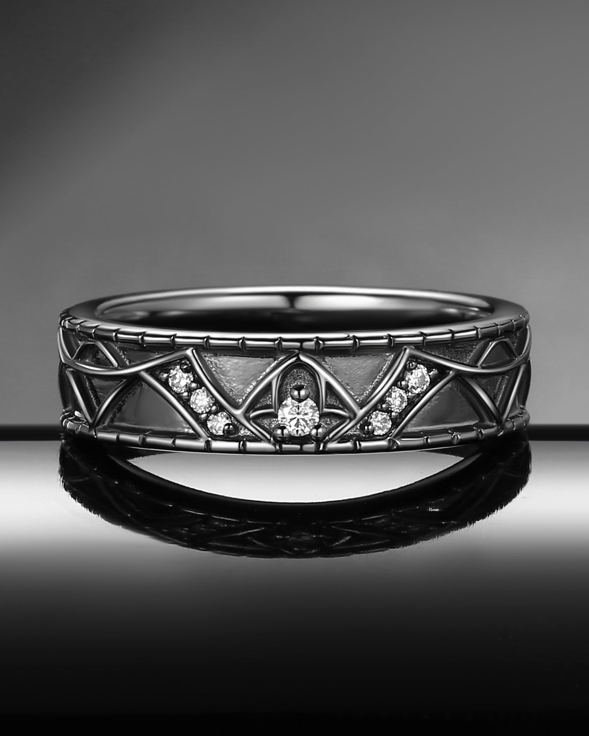 Gothic Moissanite Bat Inspired Vintage Filigree Wedding Band
