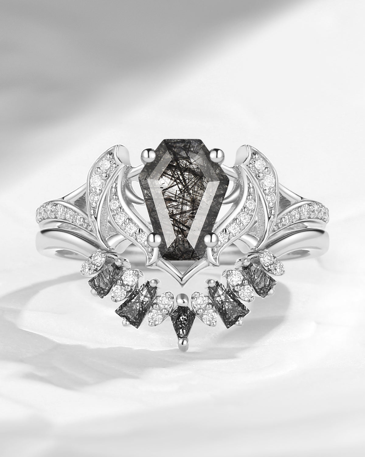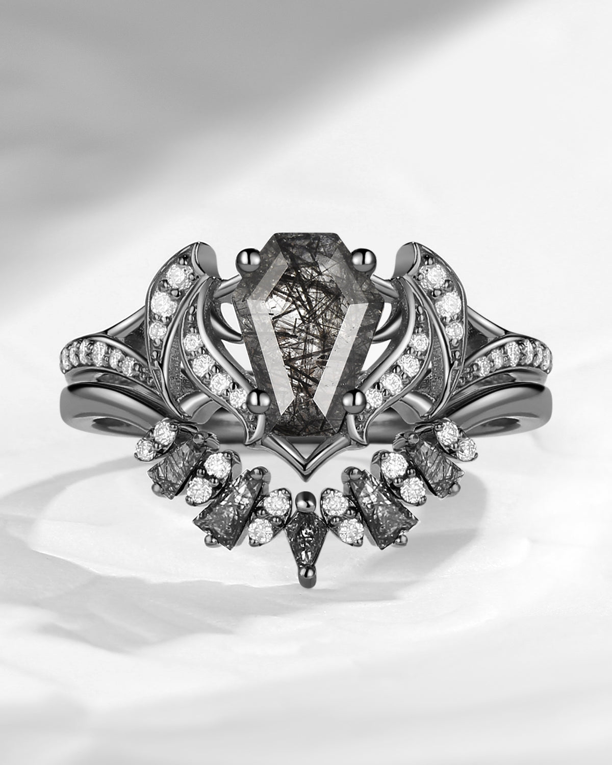 Bat Wing Inspired Coffin Moissanite Couple Bridal Ring Set