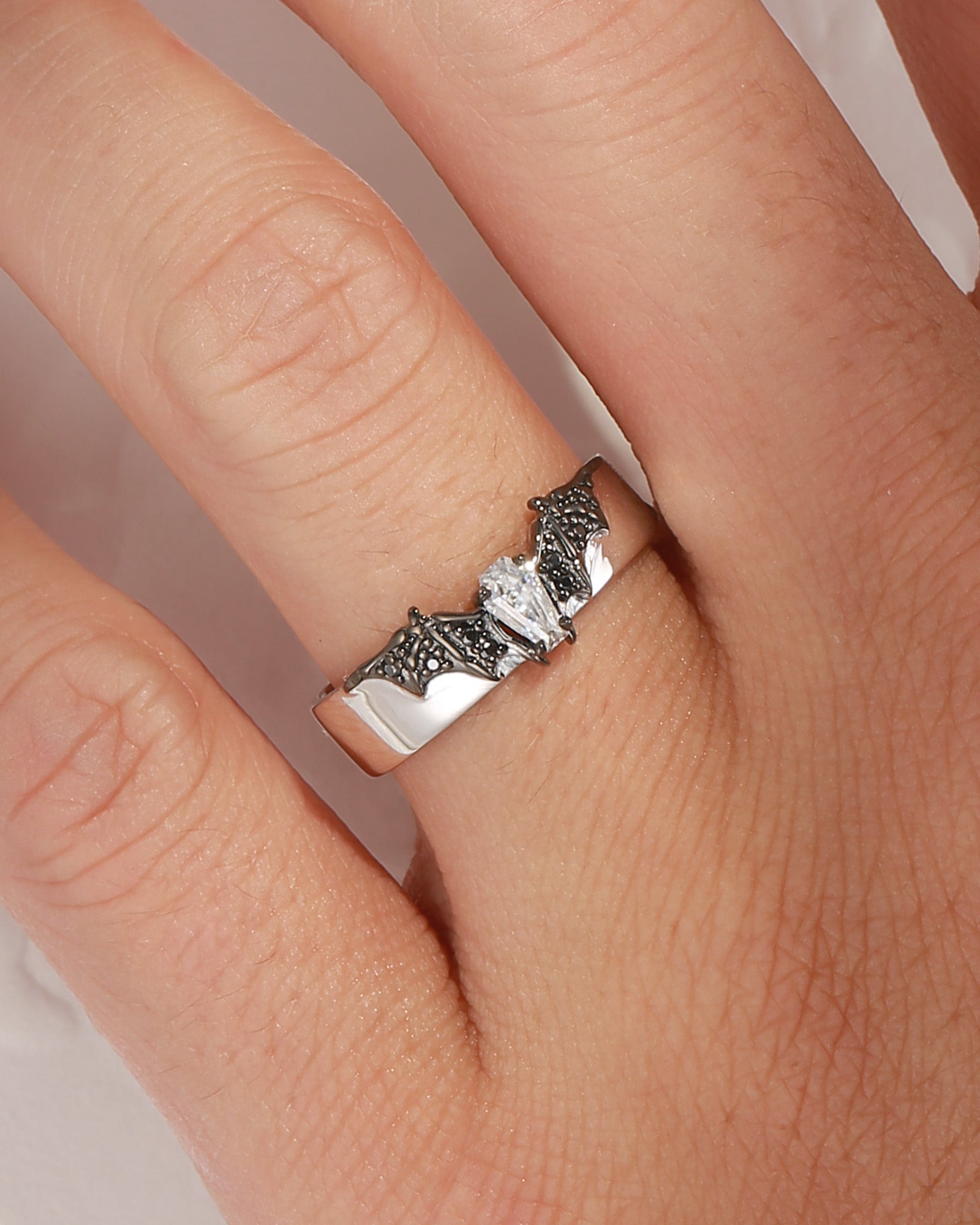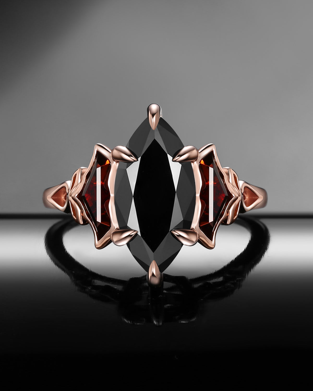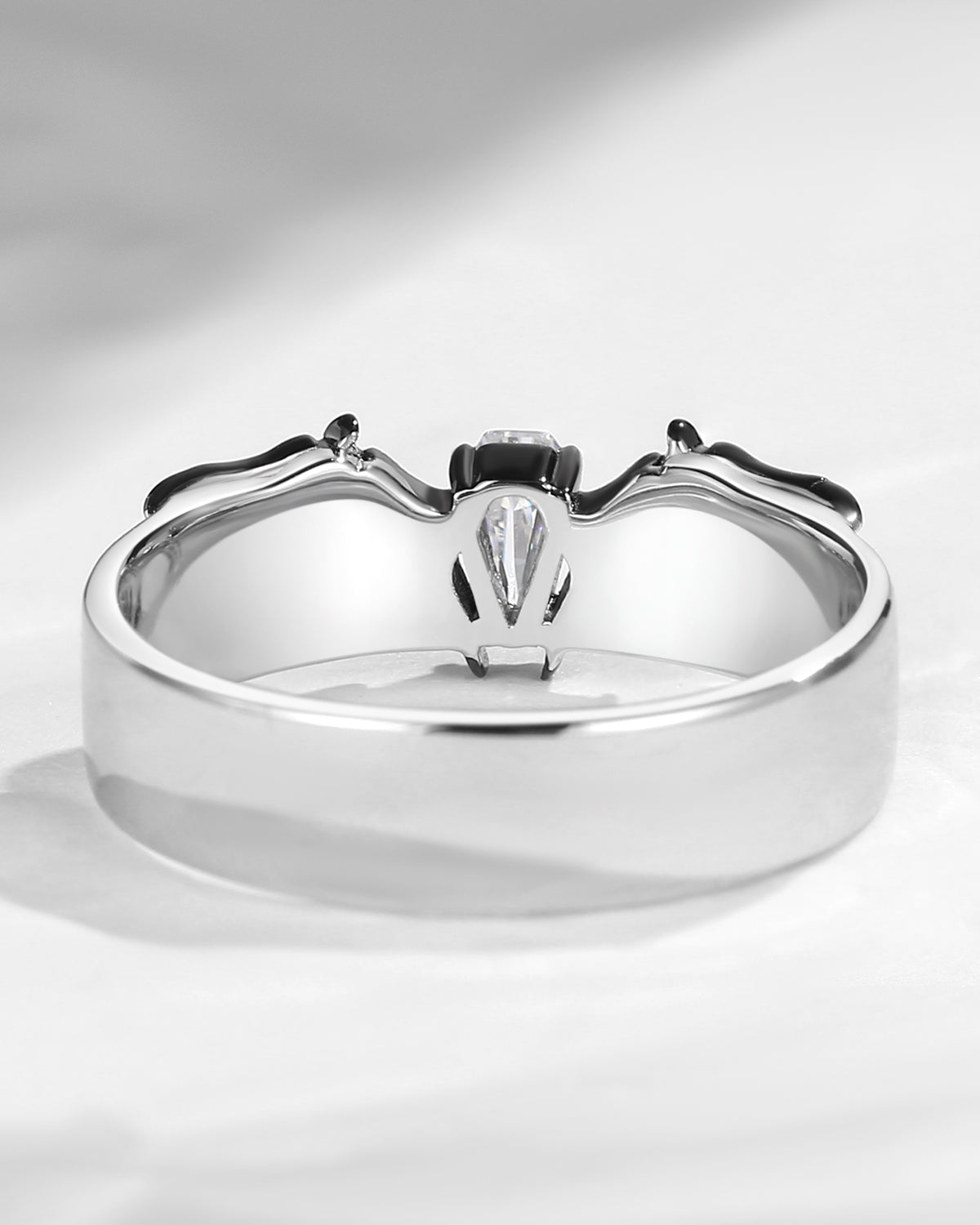 Marquise Cut Black Moissanite Gothic Bat Inspired Engagement Ring