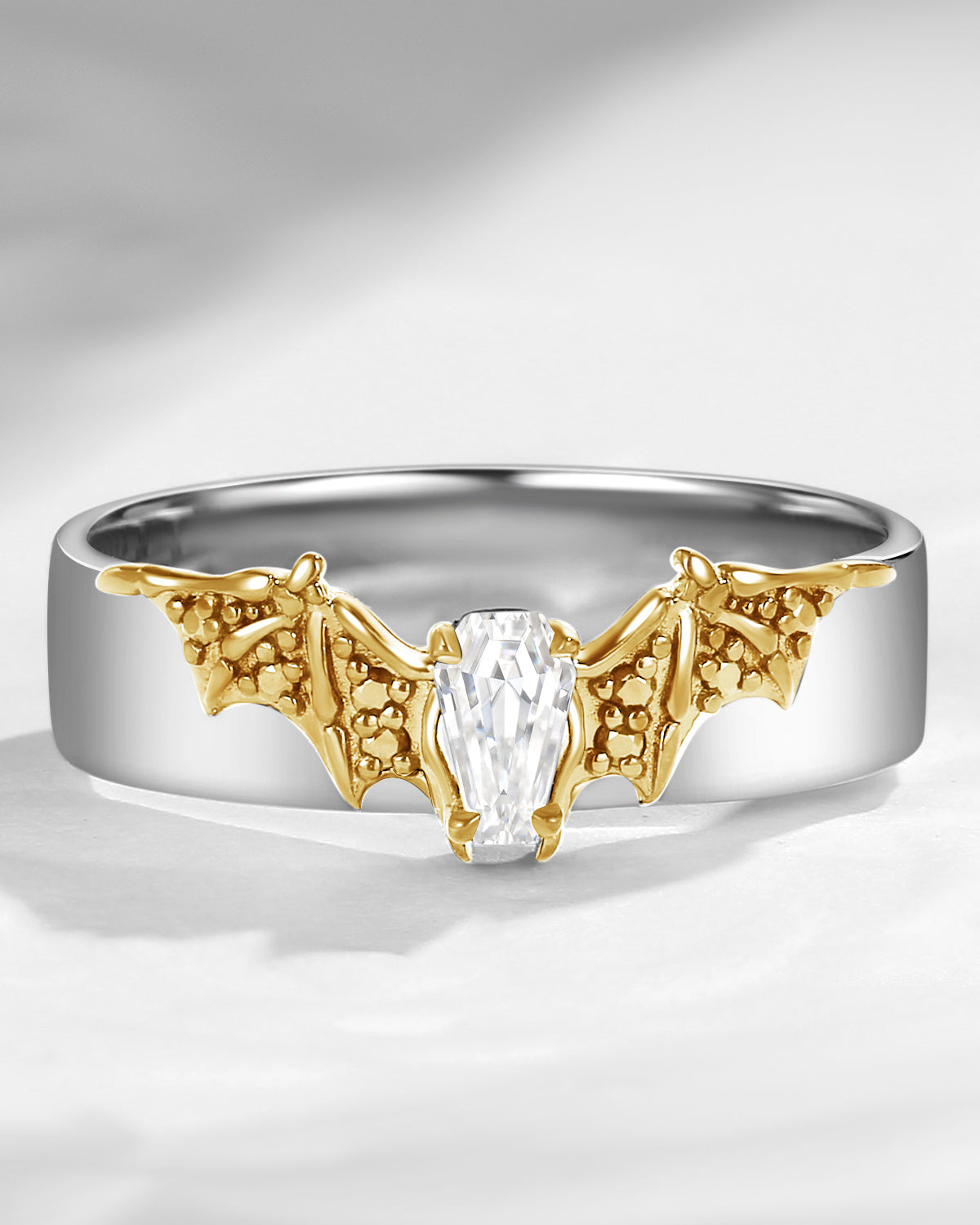 Coffin Cut Moissanite Mixed Metal Bat Inspired Wedding Band For Men