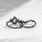 Nature Inspired Pear Cut Moss Agate Halo Engagement Ring Set 2pcs