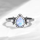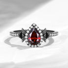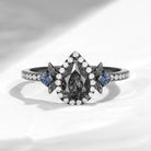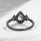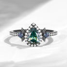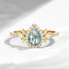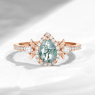 Nature Inspired Pear Shaped Moss Agate Halo Leaf Engagement Ring