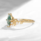 Unique Nature Inspired Kite Cut Moss Agate Leaf Engagement Ring