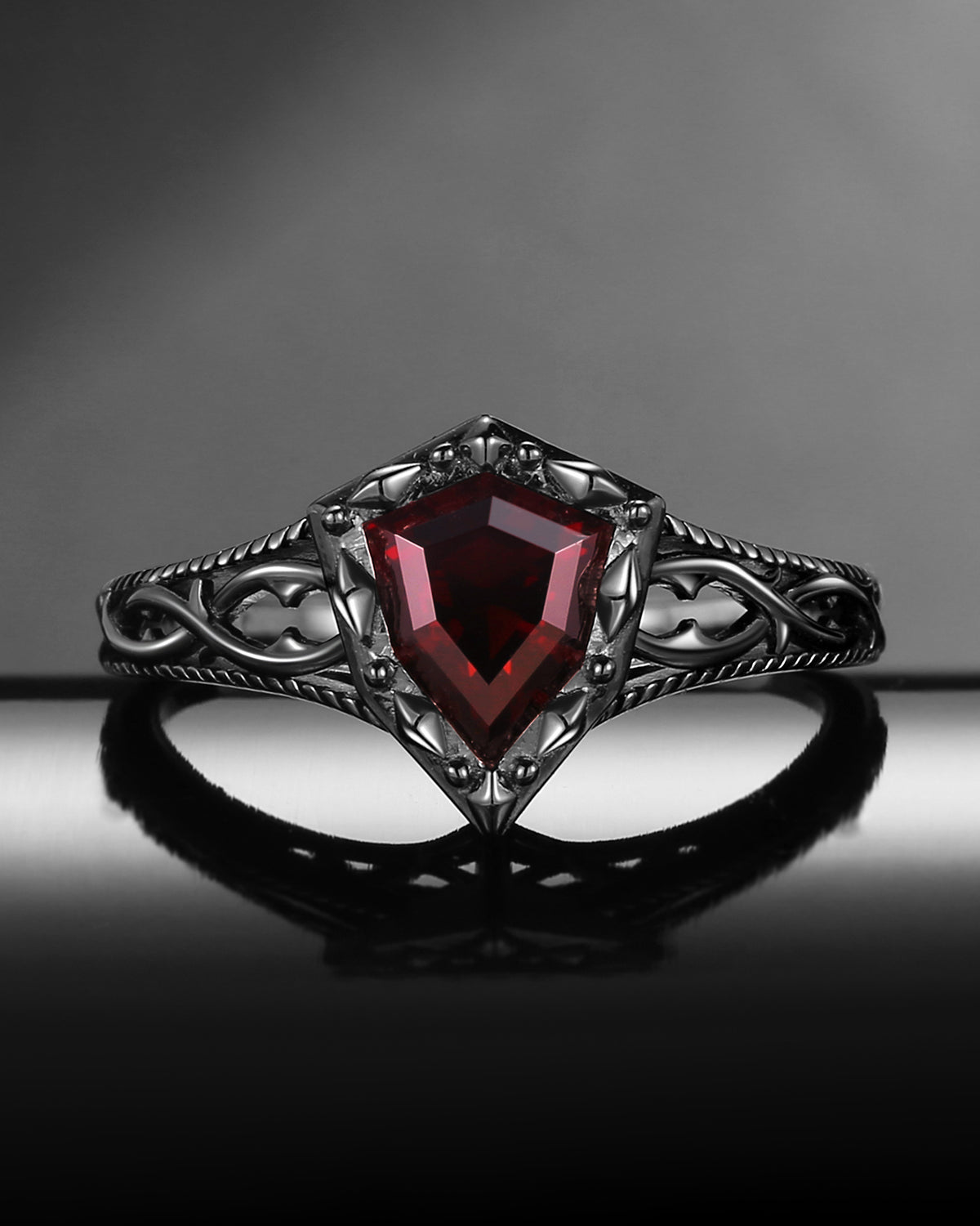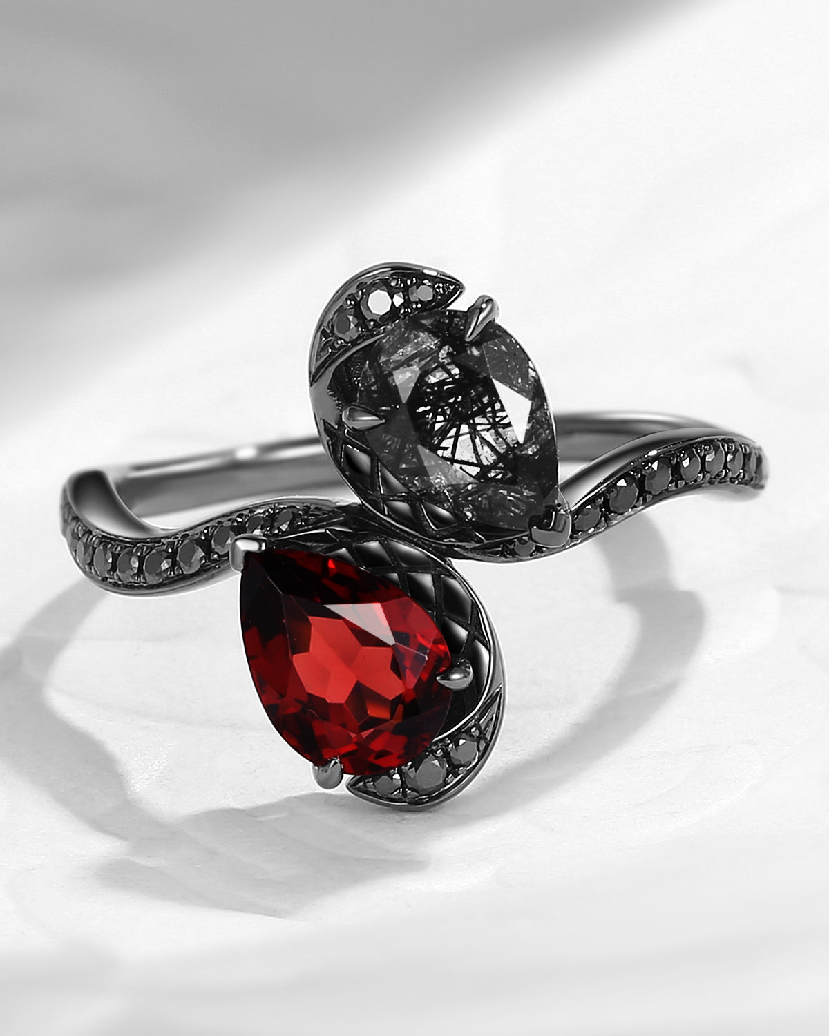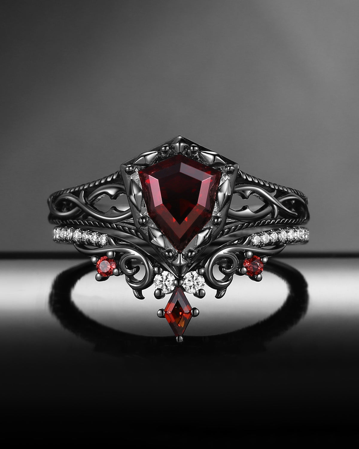 Gothic Pear Cut Garnet Vampire Fallen Aegis Engagement Ring Set 2pcs