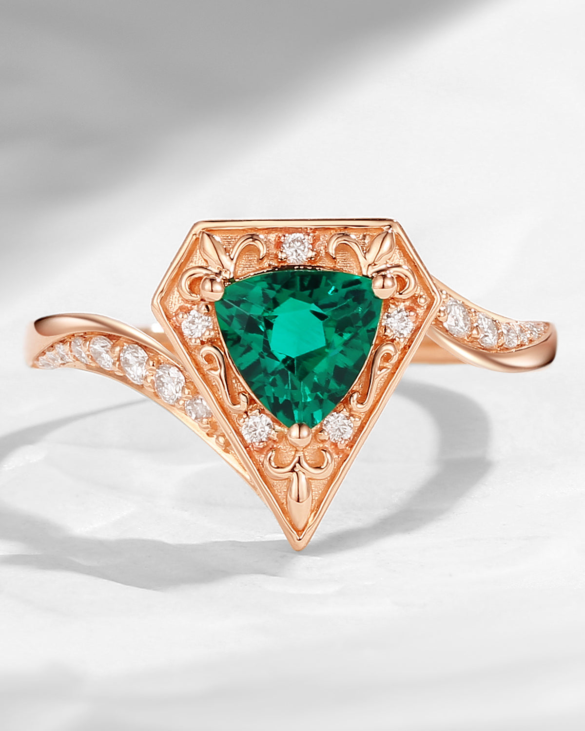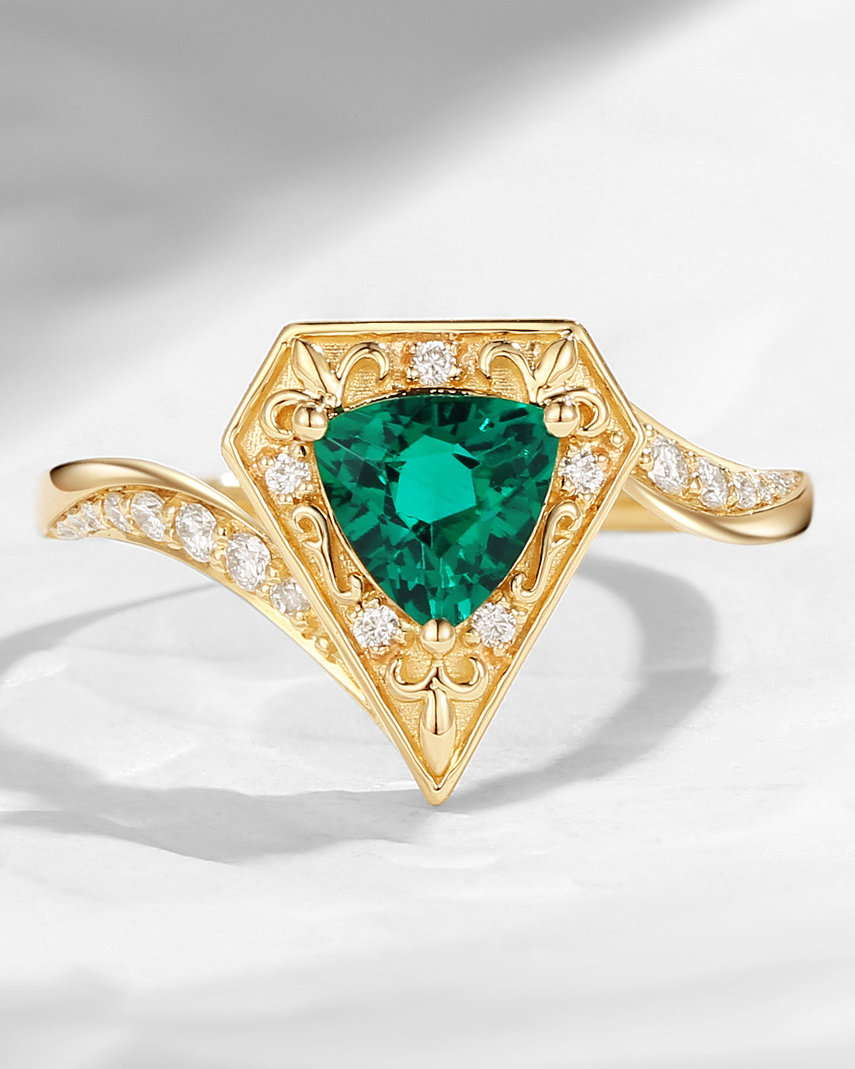 Shield Cut 'Fallen Aegis' Leafy Filigree Gold Engagement Ring