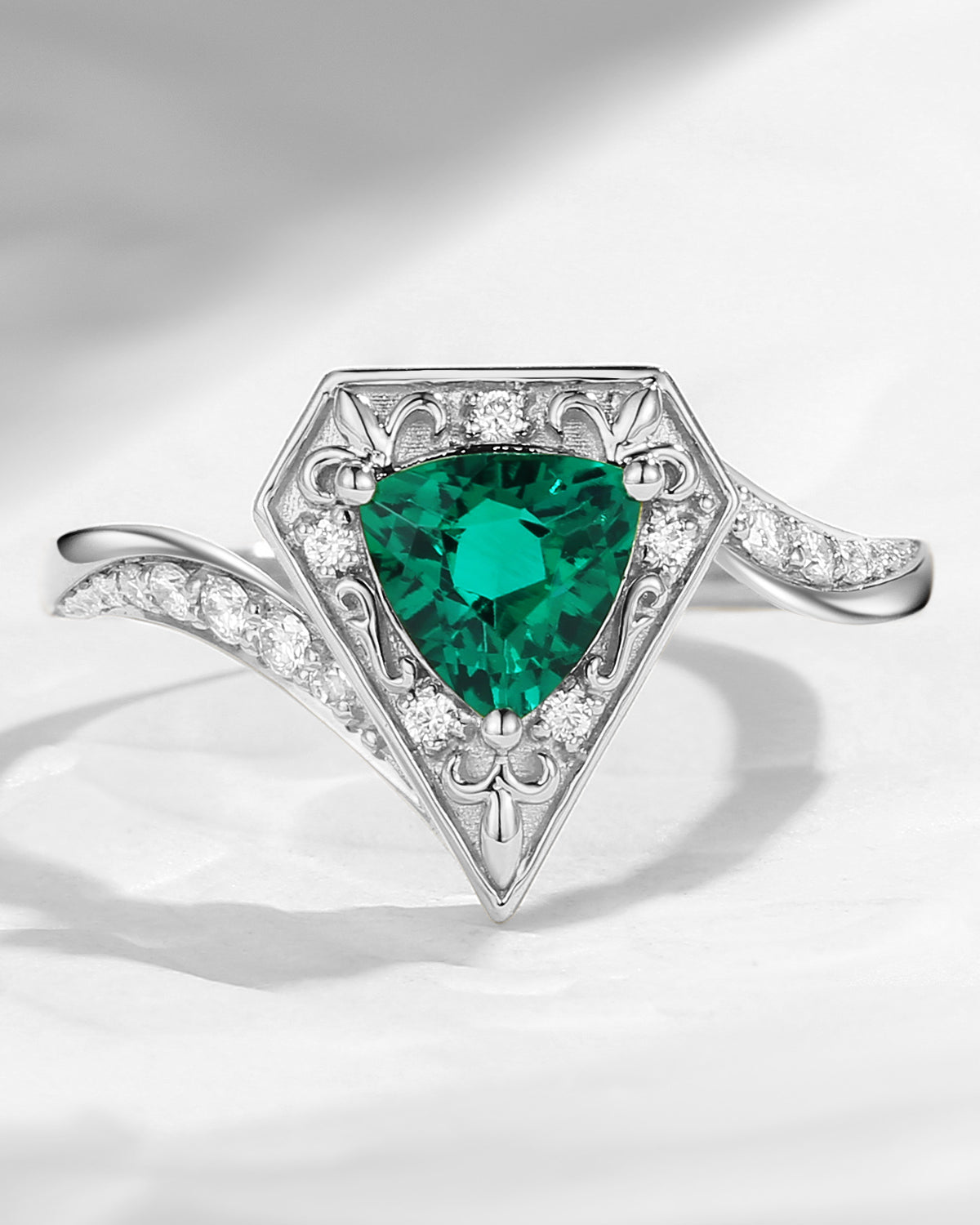 Nature Inspired Emerald Cut Moss Agate Gothic Engagement Ring Set 3pcs