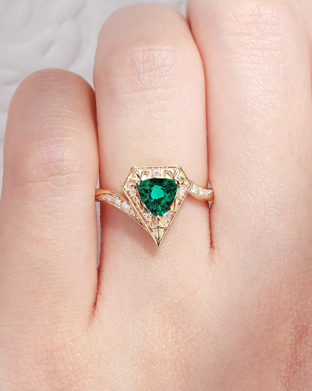 Shield Cut 'Fallen Aegis' Gothic Inspired Filigree Gold Engagement Ring
