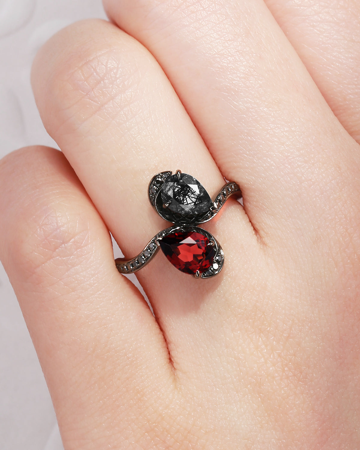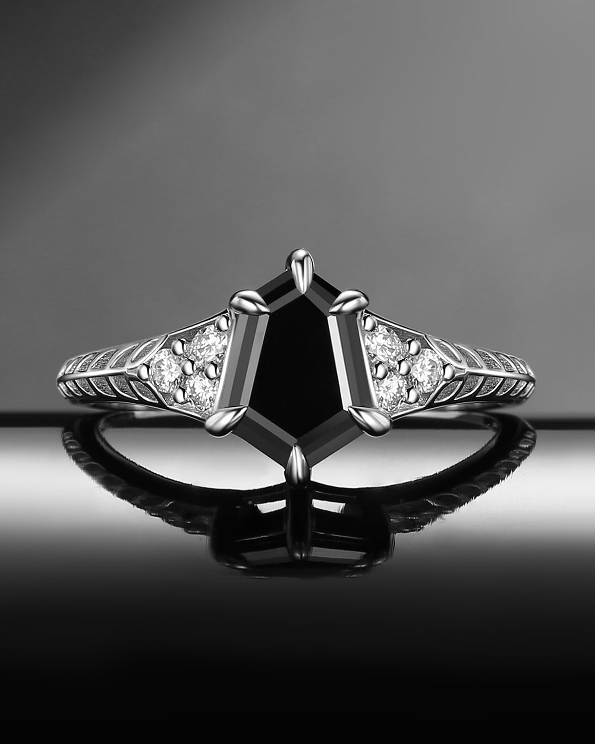 Gothic Coffin Cut Black Rutilated Quartz Engagement Ring - 'Serpent's Embrace'