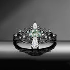 Bark Textured Half Moon Moss Agate & Coffin Moissanite 'Tree of Life' Leafy Mushroom Engagement Ring Set 2pcs Garden of Eden