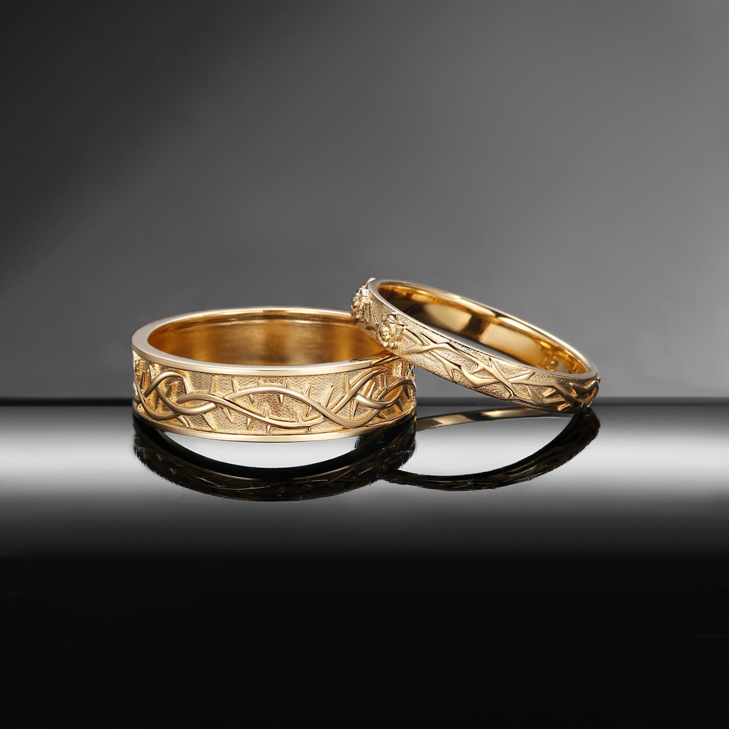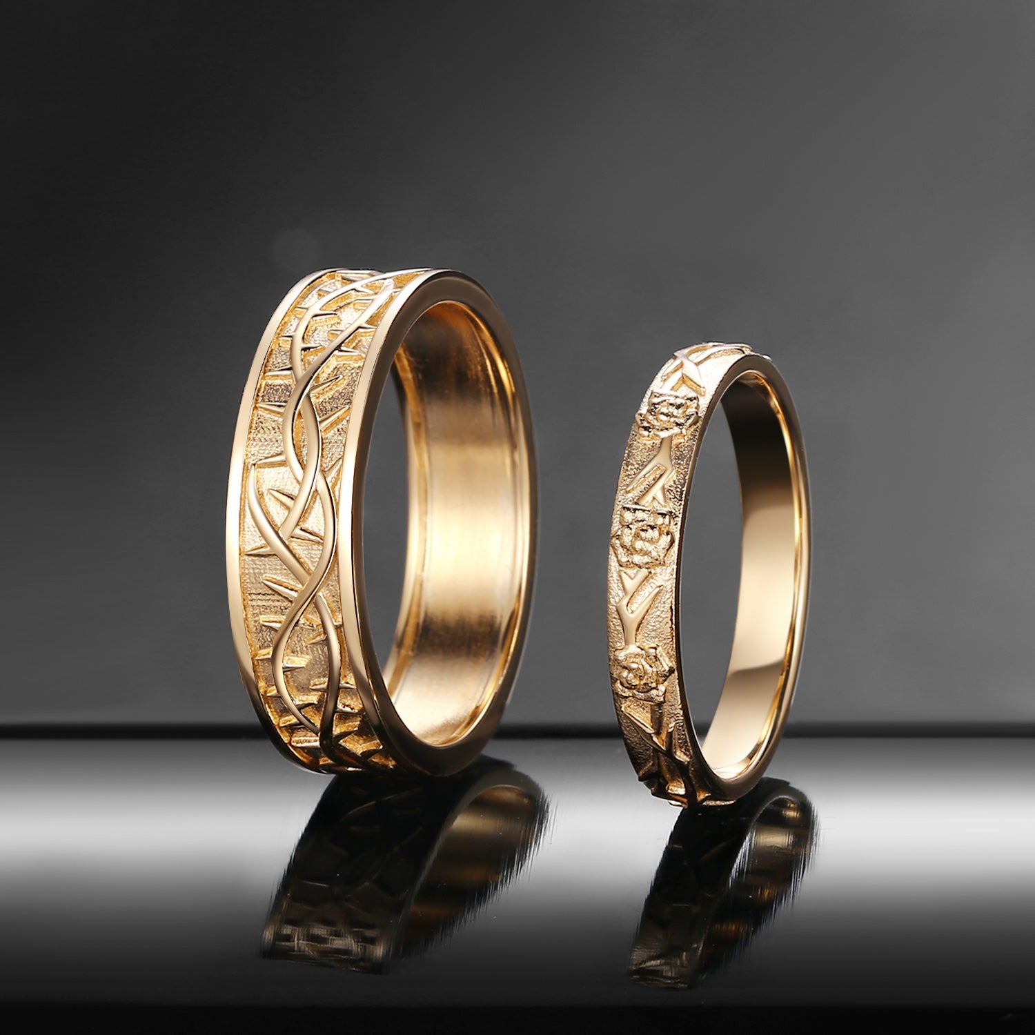 'Thorns & Roses' Filigrees Engagement Ring Band Set 2pcs
