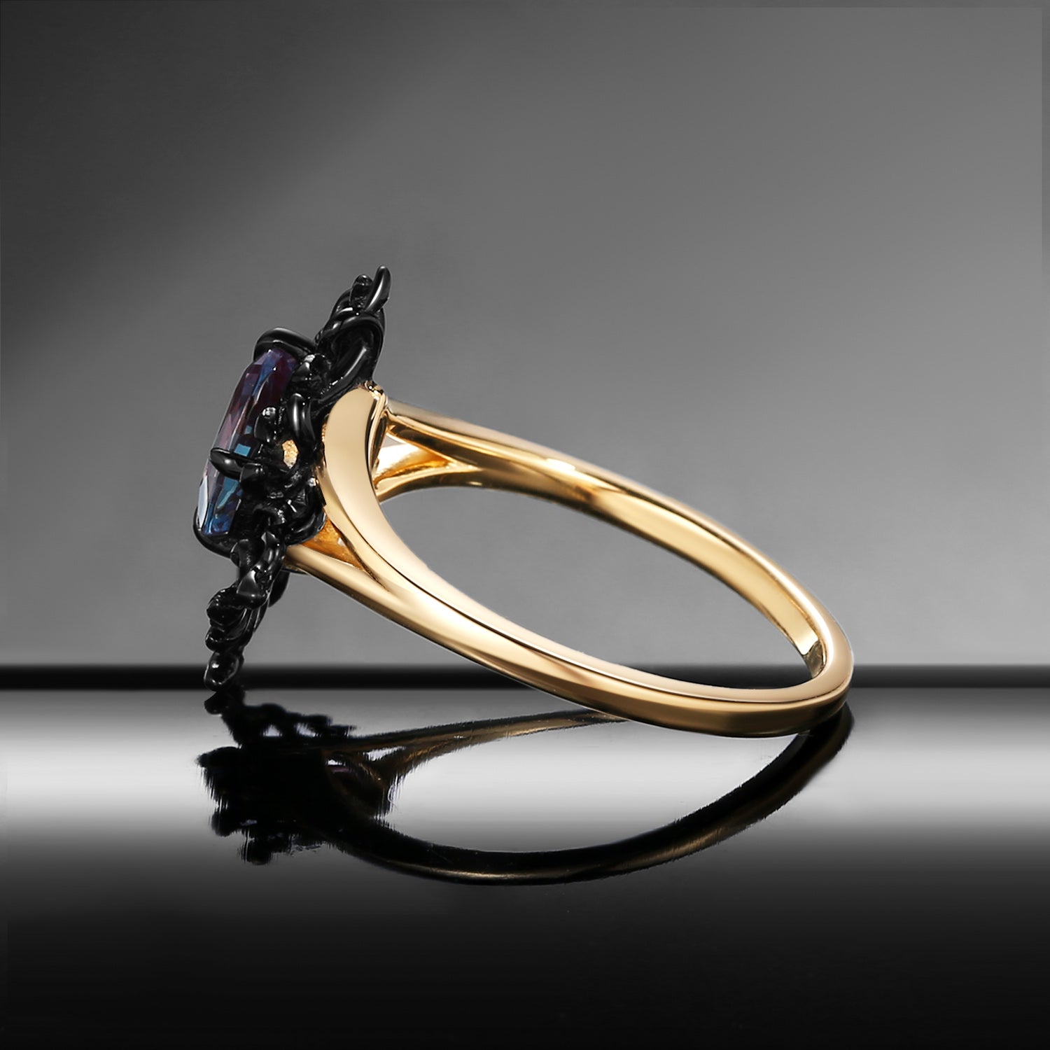 Unique Snake Inspired Oval Cut Lab Alexandrite Gothic Style Engagement Ring Gift