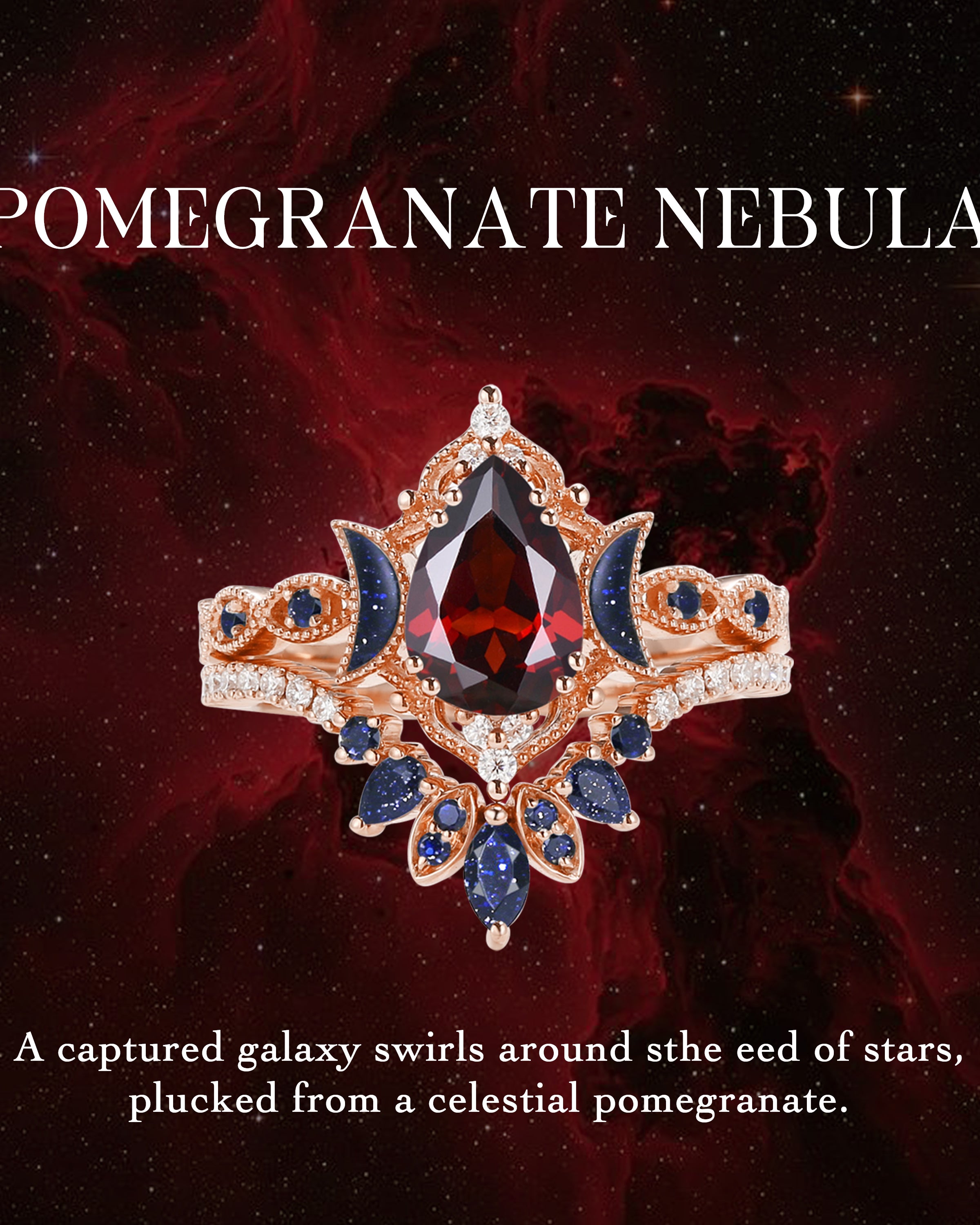 Crescent Moon | Pear Cut Garnet 'Ultra Galaxy' Engagement Ring Set 2pcs