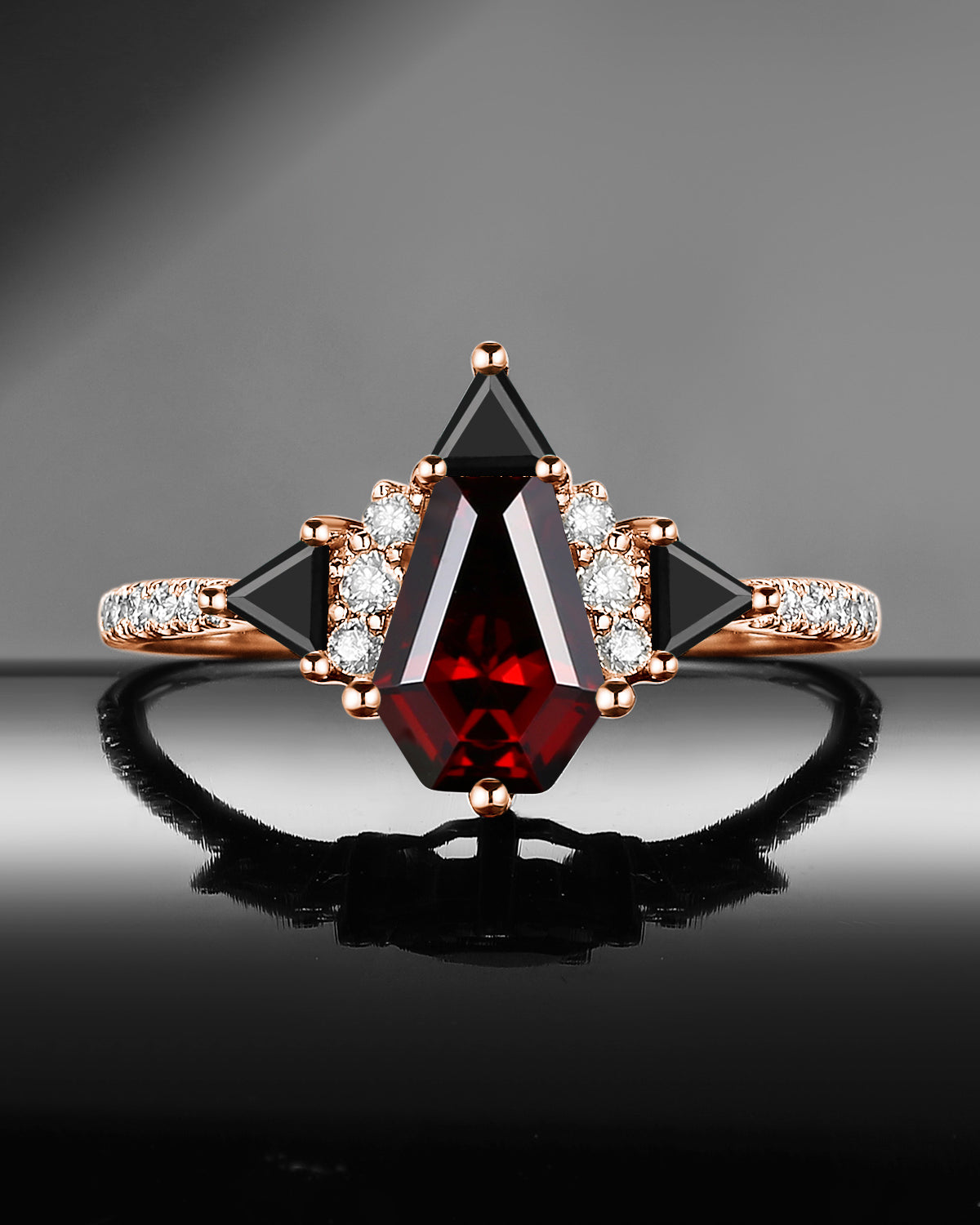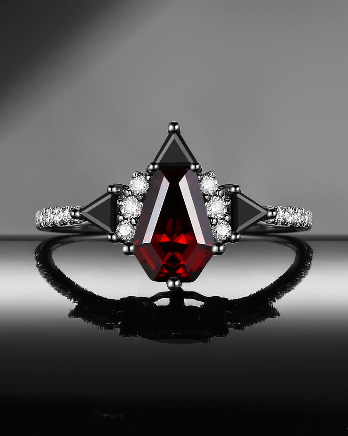Cluster Coffin Shaped Garnet Classic Black Gold Engagement Ring