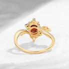Celtic Calendar | 12.24-1.20 | Oval Garnet Nature Inspired Birch Leafy Celtic Ring