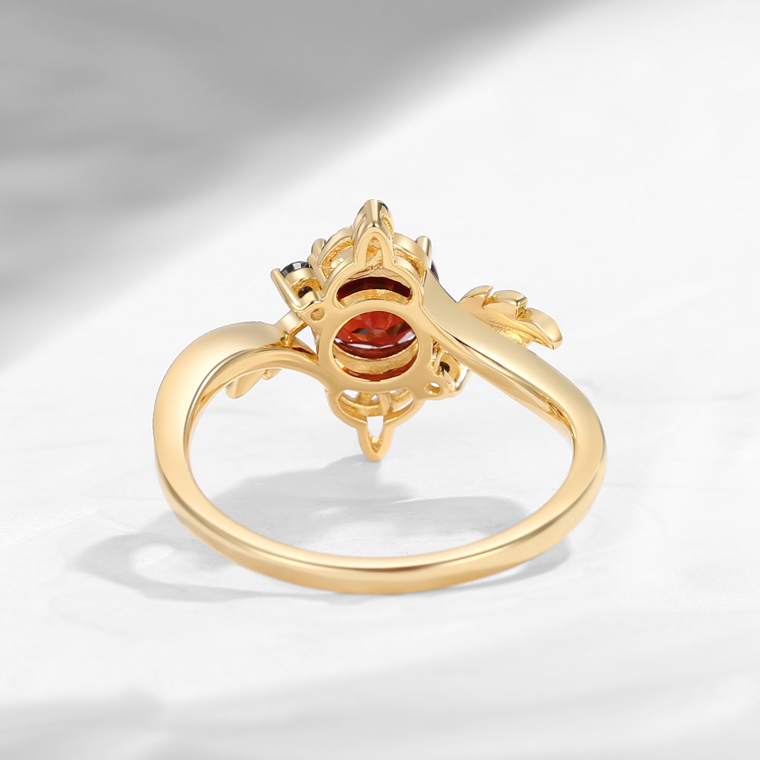 Celtic Calendar | 12.24-1.20 | Round Cut Garnet Nature Inspired Birch Leafy Celtic Ring